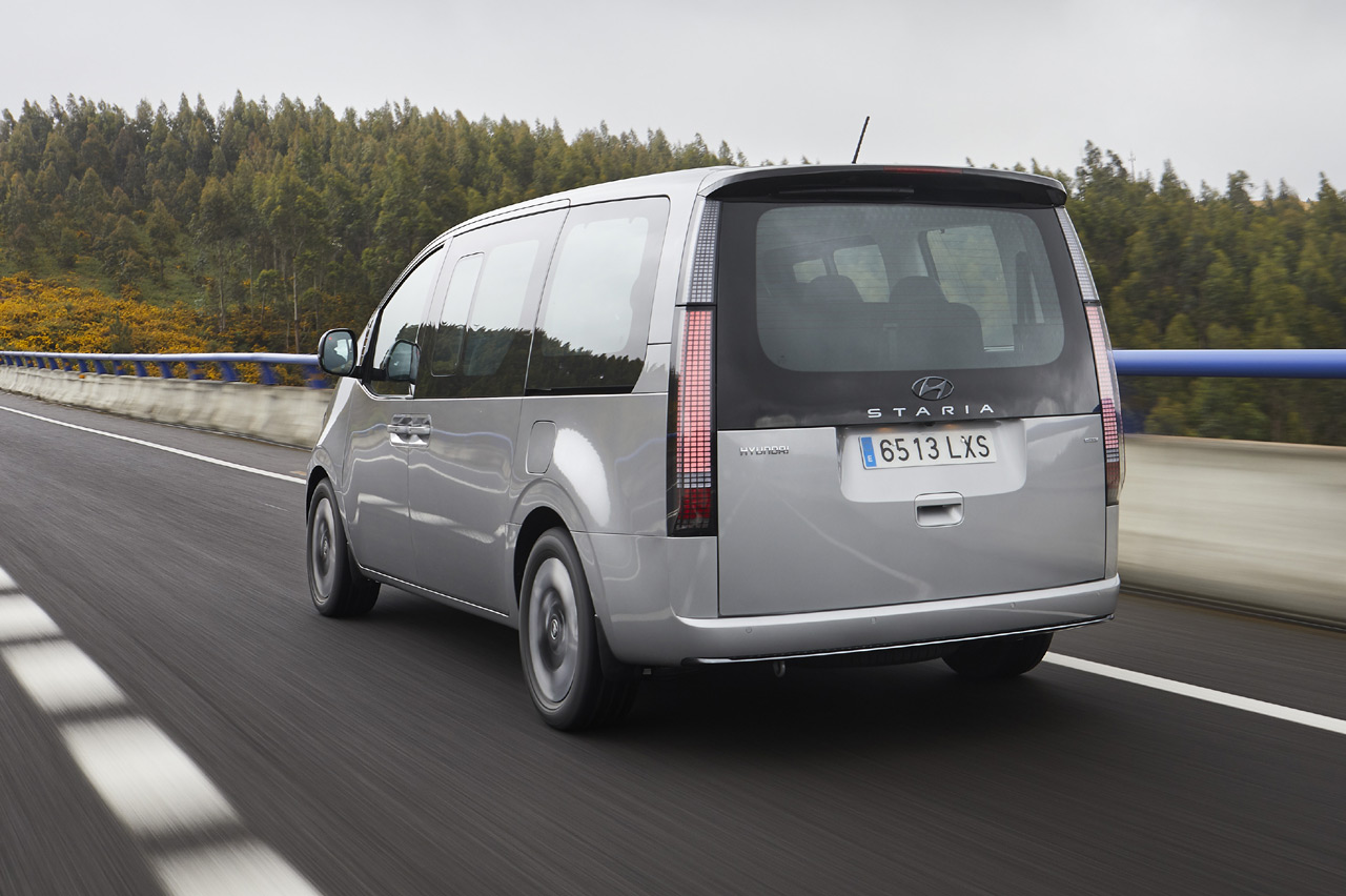 El hecho de que se asiente sobre la base de una estructura empleada en turismos le permite contar con esquema de suspensiones más refinado que algunos de sus rivales. Me explico: mientras que competidores como el Ford Tourneo Custom ofrecen un eje rígido trasero controlado por vetustas ballestas, el Staria dispone de un avanzado esquema multibrazo con dobles trapecios y barra estabilizadora que aporta una calidad de rodadura y un confort de marcha claramente superior.