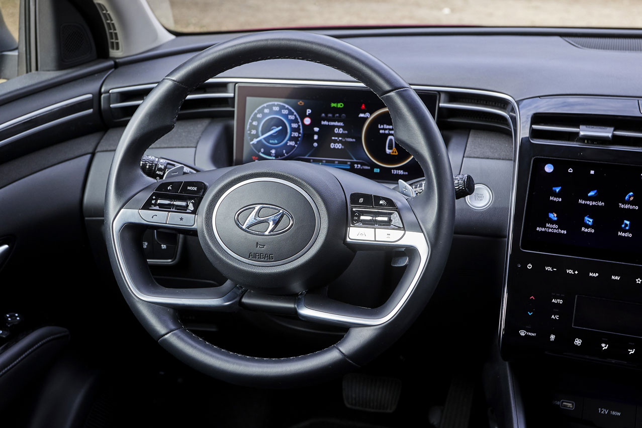 El de la prueba, el Hyundai Tucson 1.6 TGDI 150 CV 48V 7DCT, con acabado Tecno tiene un precio de partida de 39.675 euros -sin descuentos-, este sí, con hibridación ligera de 48V, añade faros full LED, llantas de 18", asientos delanteros y traseros calefactables, climatizador automático bizona y cuadro de instrumentos totalmente digital de 10,25", entre otros muchos elementos.