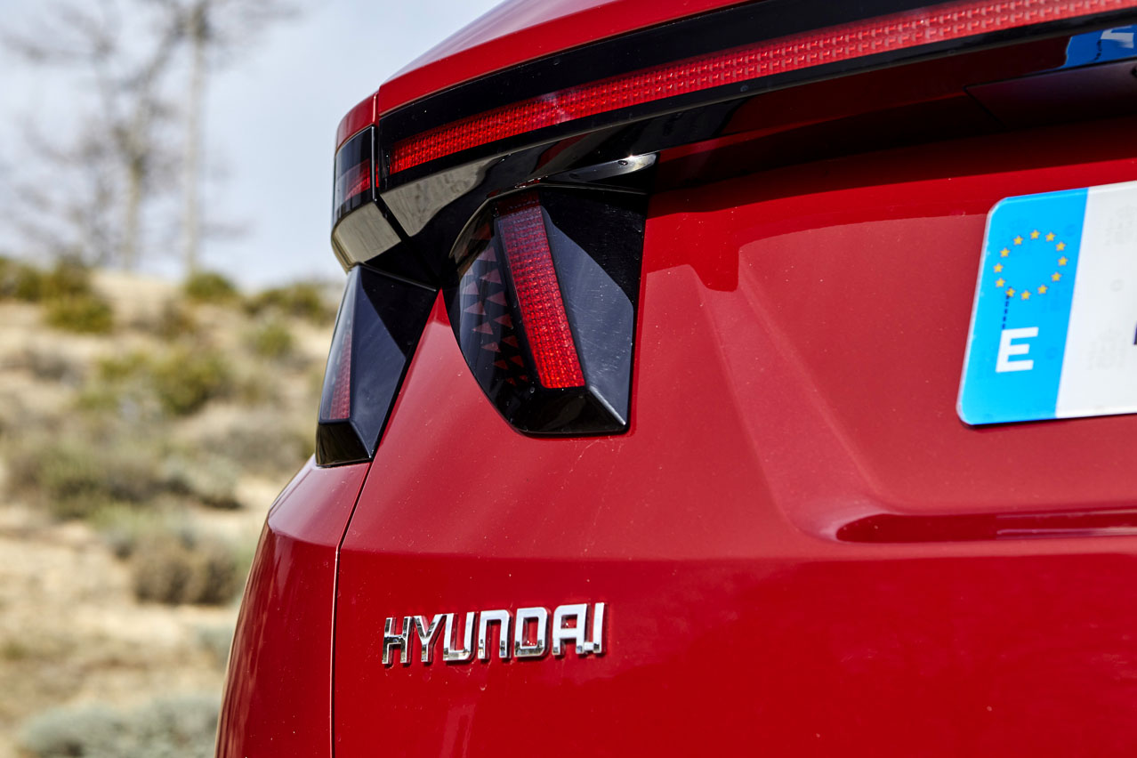 Por su parte, la zaga no es menos sorprendente con los pilotos, que están divididos y unidos a su vez con una tira de LED. Este recurso no es algo novedoso en el segmento, porque es utilizado por varios fabricantes, premium y no premium. En cambio sí lo es la inclusión del logotipo de Hyundai en la luna; algo que hasta ahora estos ojitos color canela, según mi madre, color estiércol, según mi mujer, no habían visto.