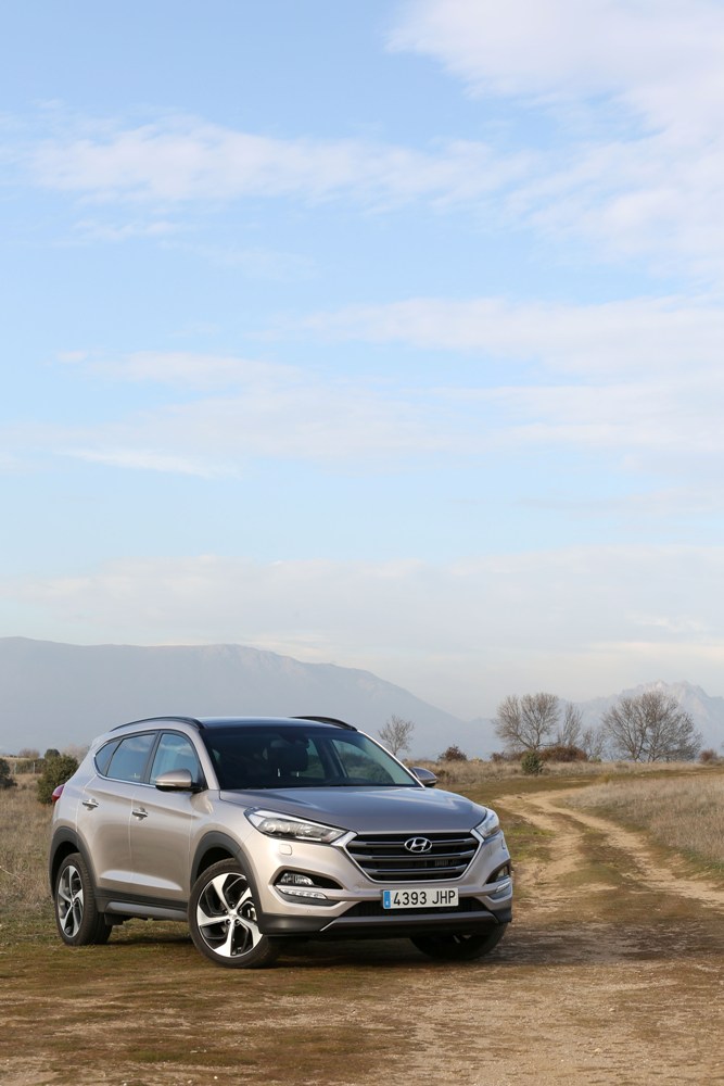 Acabo de poner a prueba el Hyundai Tucson 2015 con motor 2.0 CRDi de 136 CV, modelo que ha sido elegido 'Mejor Coche del Año 2016'. El nuevo SUV de la firma surcoreana llega para reemplazar el Hyundai ix35 y presentar un nuevo lenguaje de diseño, así como un importante salto cualitativo en cuanto a acabados y materiales. La unidad probada contaba con el nivel de equipamiento Style, el tope de gama, así como una mecánica turbodiésel asociada a una transmisión manual de seis relaciones.