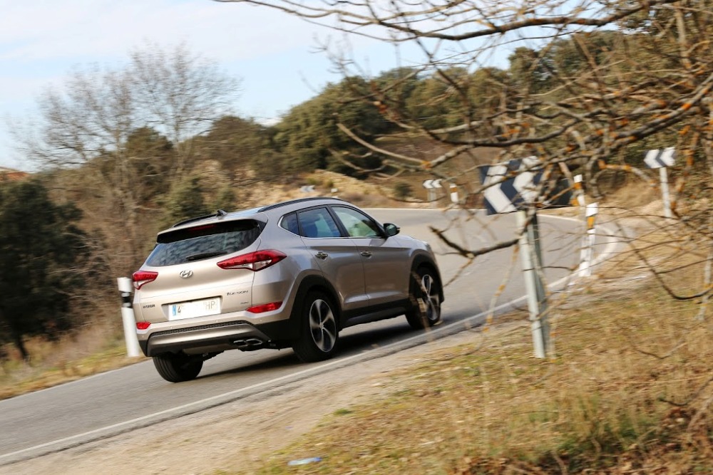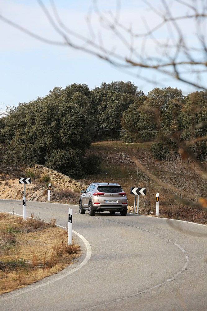 En la conducción de esta prueba del Hyundai Tucson 2015, el coche se muestra con aplomo en curvas, reduciendo el balanceo de forma considerable, pero peca de un tacto de dirección algo blando que resta sensaciones al volante, en especial el feedback que podamos recibir en autovía. Las cifras de consumo, por su parte, se alejan algo de las homologadas por el fabricante, llegando a ser de entre 7,4 y 7,6 litros por cada 100 kilómetros, aunque es algo justificable dado el Cx de 0,33 y el peso total de 1.662 kilogramos.