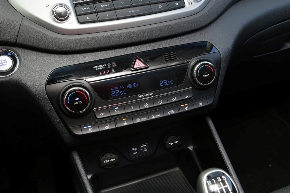 Saltamos al interior. El Tucson 2015 2.0 CRDi 136 CV que he puesto a prueba se presenta con un habitáculo espacioso con diferentes compartimentos portaobjetos. Apto para cinco ocupantes, su capacidad de carga útil asciende a 513 litros, mientras que si se abaten los asientos posteriores, la cifra asciende a 1.478 litros. Pese a disponer de tapicería de cuero, el volante, los paneles de las puertas y el salpicadero denotan ese aspecto de plástico que, pese a no presentar ruidos o crujidos, restan presencia al habitáculo.