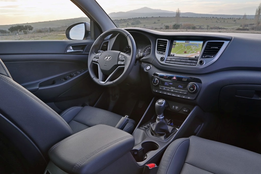 Saltamos al interior. El Tucson 2015 2.0 CRDi 136 CV que he puesto a prueba se presenta con un habitáculo espacioso con diferentes compartimentos portaobjetos. Apto para cinco ocupantes, su capacidad de carga útil asciende a 513 litros, mientras que si se abaten los asientos posteriores, la cifra asciende a 1.478 litros. Pese a disponer de tapicería de cuero, el volante, los paneles de las puertas y el salpicadero denotan ese aspecto de plástico que, pese a no presentar ruidos o crujidos, restan presencia al habitáculo.