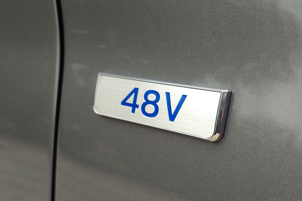 La versión que tengo entre manos equipa un sistema de 48 voltios que ayuda al propulsor térmico con hasta 12 kW. Está formado por una batería de polímero de iones de litio con una capacidad de 0,46 kW/h (9,7 Ah), un generador con inversor, un convertidor de corriente de baja tensión y un motor eléctrico. Todo ello da soporte al motor de combustión para que su consumo y emisiones se vean reducidos un 0,7% y entre un 13 y un 31%, respectivamente. En fases de aceleración, ayuda, y en deceleración regenera la energía, todo ello siendo imperceptible para mis sentidos. A pesar de su configuración y tras el cambio de normativa de emisiones, no se beneficia de la etiqueta ECO.