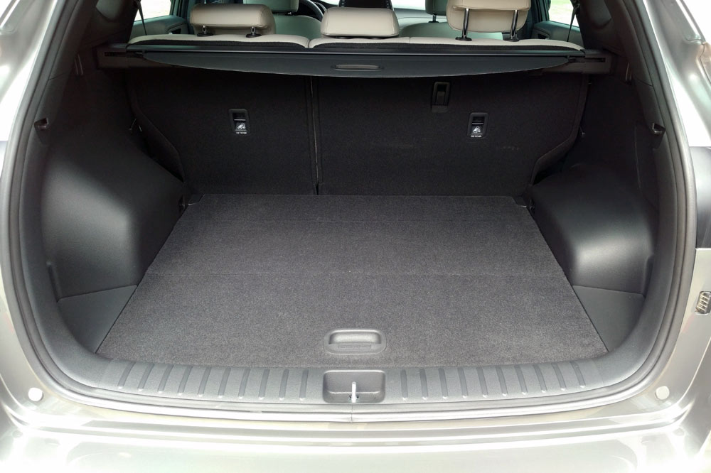 Antes de comenzar la prueba dinámica del Hyundai Tucson 2019 48V Mild Hybrid hecho un vistazo al maletero para ver si ha perdido capacidad de carga. Sigue siendo plano y de formas regulares y, según los responsables de Comunicación, tiene el mismo volumen: 513 litros. Y es que los complementos del sistema micro híbrido van situados en el hueco donde en las otras versiones va alojada la rueda de repuesto -por lo que cuenta con un kit reparapinchazos-. Además, los respaldos de los asientos posteriores tienen una proporción 60/40 y son abatibles, solución gracias a la cual el espacio llega a cubicar 1.503 litros.