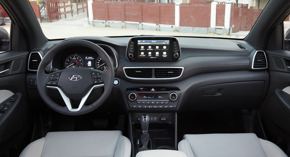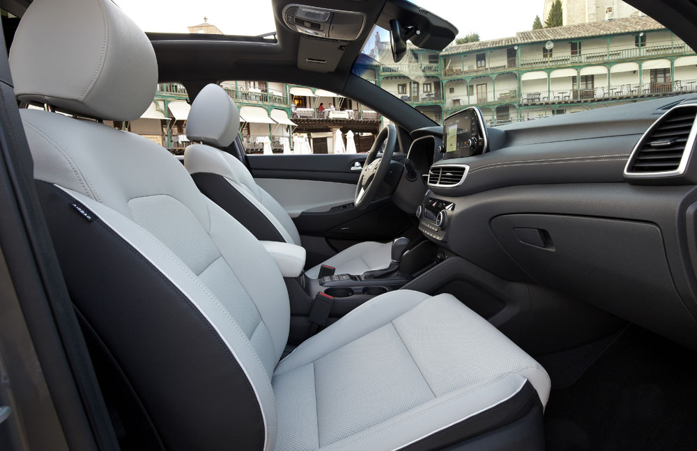 Continúo con la prueba del Hyundai Tucson 2019 48V y accedo al interior. Los cambios más profundos los recibe el salpicadero, puesto que alberga una nueva pantalla flotante de 7" que trabaja para el sistema de infoentretenimiento. El conductor ahora tiene la información más a la vista, con lo que aparta menos la mirada de la carretera; soporta Apple CarplayTM y Android AutoTM. También se han visto modificadas las toberas del sistema de climatización, que ya no están a los lados de la pantalla, sino debajo, adoptando una distribución horizontal. Además de las tres nuevas tapicerías en cuero perforado en colores Rojo Vino, Negro y Beige, los cómodos asientos ahora son calefactables y ventilados -ambas funciones en opción-. Los materiales son de calidad -incorpora más elementos gomosos- y los ajustes muy buenos, algo que viene siendo habitual en los productos de Hyundai.