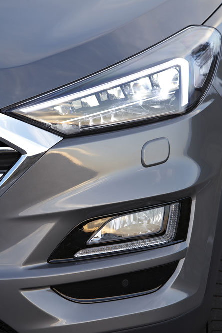 Pero antes de hablarte de su sistema diésel híbrido ligero es de recibo pasar revista al exterior, donde ha recibido algunos cambios que refrescan su imagen, cosa que no es que pidiese a gritos. Los grupos ópticos delanteros, que son Bi-LED, portan un nuevo diseño y son los encargados de escoltar la nueva parrilla en cascada, rasgo característico de los últimos modelos de la firma que no podía faltar en este superventas. En la zaga hallo un paragolpes de nueva factura, unas llamativas salidas de escape dobles cromadas, unos pilotos con una renovada distribución y un portón de nuevo cuño. La gama recibe cuatro nuevas llantas que presumen de un diseño muy llamativo y con las que el vehículo gana enteros, independientemente de su diámetro -van de las 16 a las 19"-. Asimismo, la carrocería también puede adoptar uno de los tres nuevos colores: Olivine Grey, Stellar Blue o Champion Blue -en esta prueba del Tucson 2015 puedes ver todas las diferencias-.