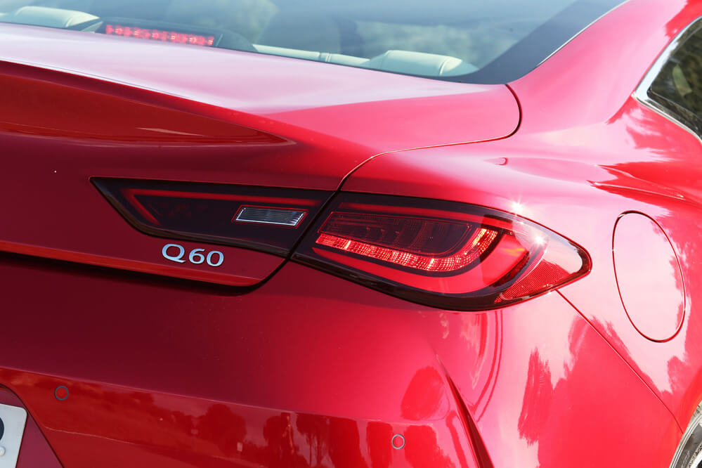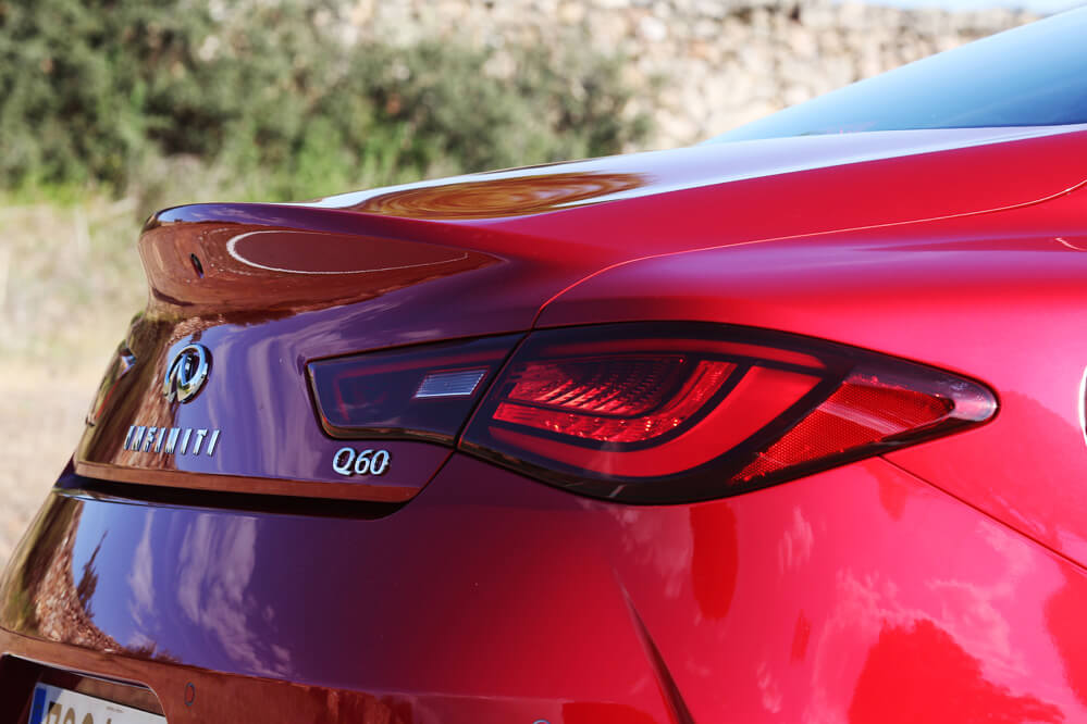 Mis ojos se acaban de enamorar de uno de los coches más bonitos del mercado: el Infiniti Q60 2.0t Premium de esta prueba. Sus proporcionadas líneas crean un diseño que roza la perfección, que combina deportividad y elegancia a partes iguales. Su poderosa estampa, recogida en 4.690 mm de longitud, 1.850 mm de anchura y 1.395 mm de altura y vestida con el color Dynamic Sunstone Red es la envidia de muchos candidatos del segmento; y no es para menos…
