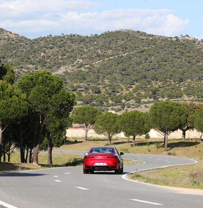 Me llama poderosamente la atención lo bien insonorizado que está, algo que me invita a conducir relajado. También su suspensión, que filtra bastante bien las irregularidades de la calzada. Cuando llego a mi zona de curvas favorita, pulso el botón con el que selecciono el modo de conducción que demando (Standard, Snow, Eco y Sport) y que está situado al lado de la palanca. Constato que la suspensión es menos firme que la de un BMW Serie 4, y no hablo de su variante Performance, pero mantiene la carrocería sin balanceos ni cabeceos.