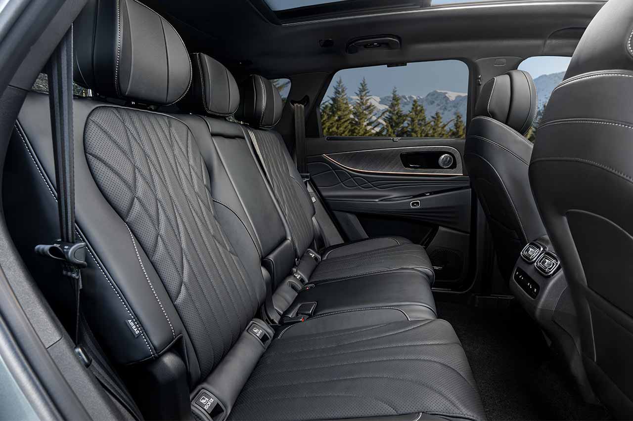 En las plazas traseras hay espacio para adultos de prácticamente 2 m de altura, siempre que hablemos de los asientos laterales, que por cierto están calefactados. Puertos USB o un reposabrazos central no faltan, mientras que la banqueta es corredera y los respaldos abatibles en varias posiciones. Lógico, por otra parte, cuando tienes una tercera fila de asientos.