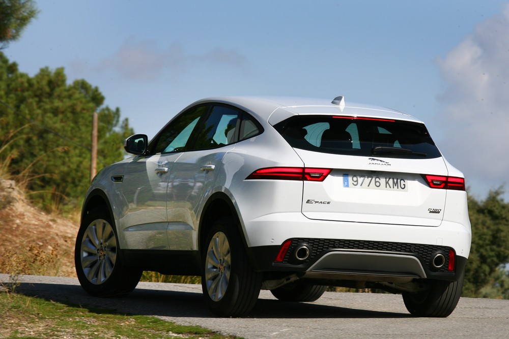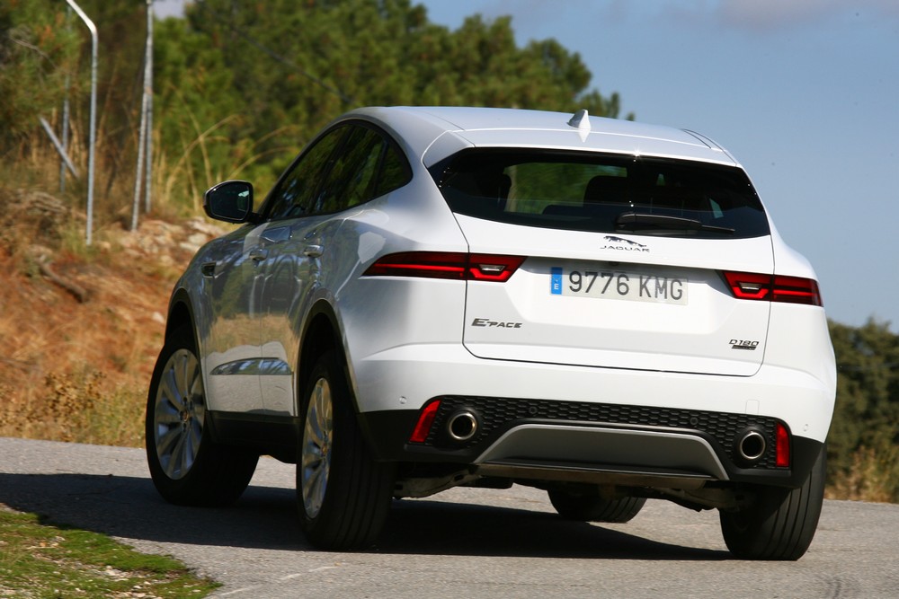 Conducir el E-Pace es muy agradable gracias al equilibrio que ofrece entre agilidad y confort. Esto se debe en gran medida al chasis de este todocamino, una estructura similar a la que emplean modelos como el Range Rover Evoque (prueba) o el Land Rover Discovery Sport (prueba). Combina materiales como aceros de alta resistencia o aluminio, presente en elementos como el capó, el portón del maletero o el techo, para crear un conjunto relativamente ligero (1.843 kg) y con gran resistencia torsional.