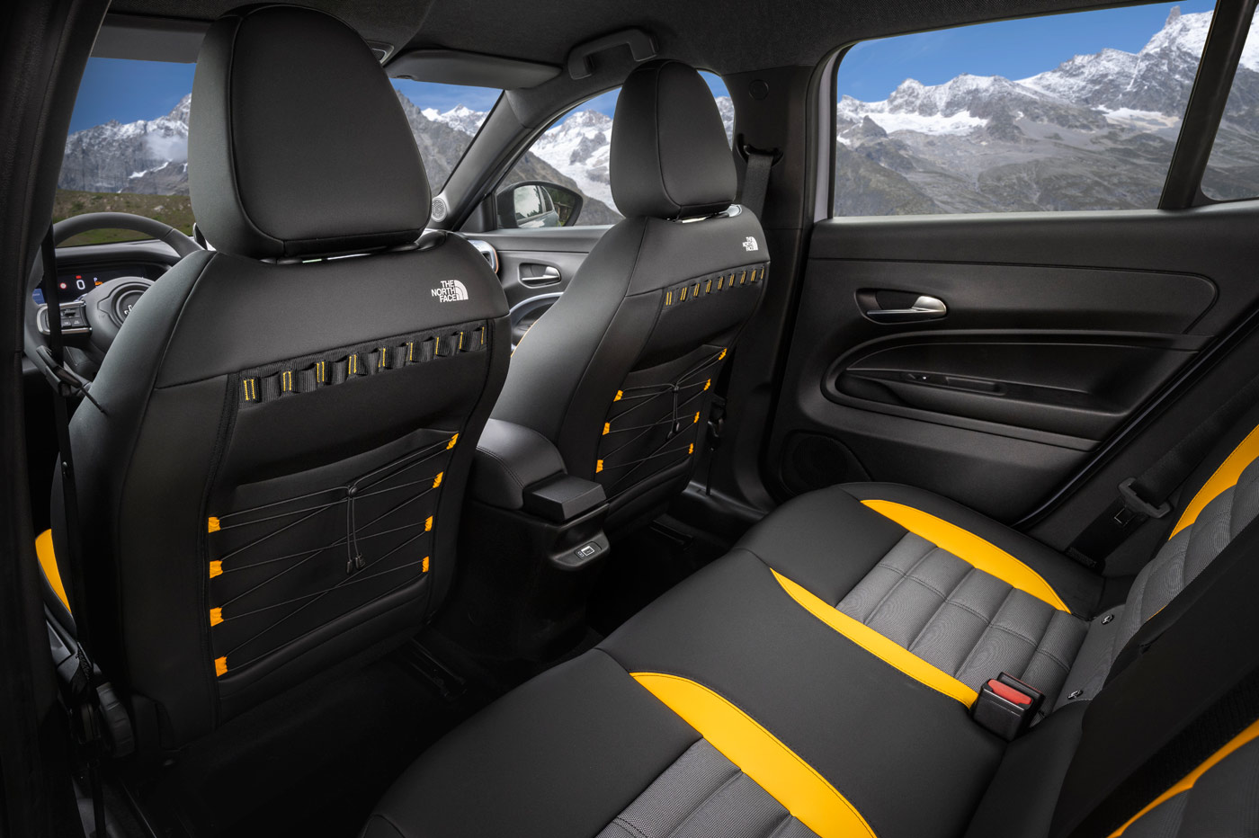 Eso en el exterior, porque en el interior equipa una tapicería exclusiva lavable inspirada en la parte delantera y trasera de las mochilas The North Face con su típico correaje. De hecho, podrás ver el logotipo en blanco en los asientos.