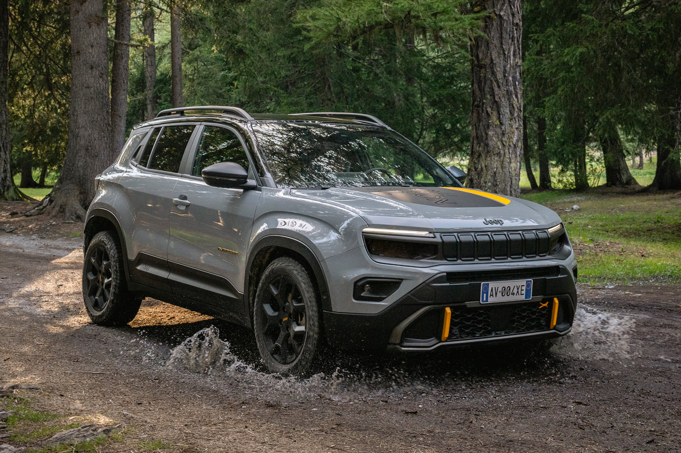 Podrás diferenciarlo del resto de Avenger 4xe por los detalles en color Summit Gold, que sustituye al verde flúor; el adhesivo antirreflectante del capó y porque la clásica parrilla de siete ranuras incorpora líneas topográficas.