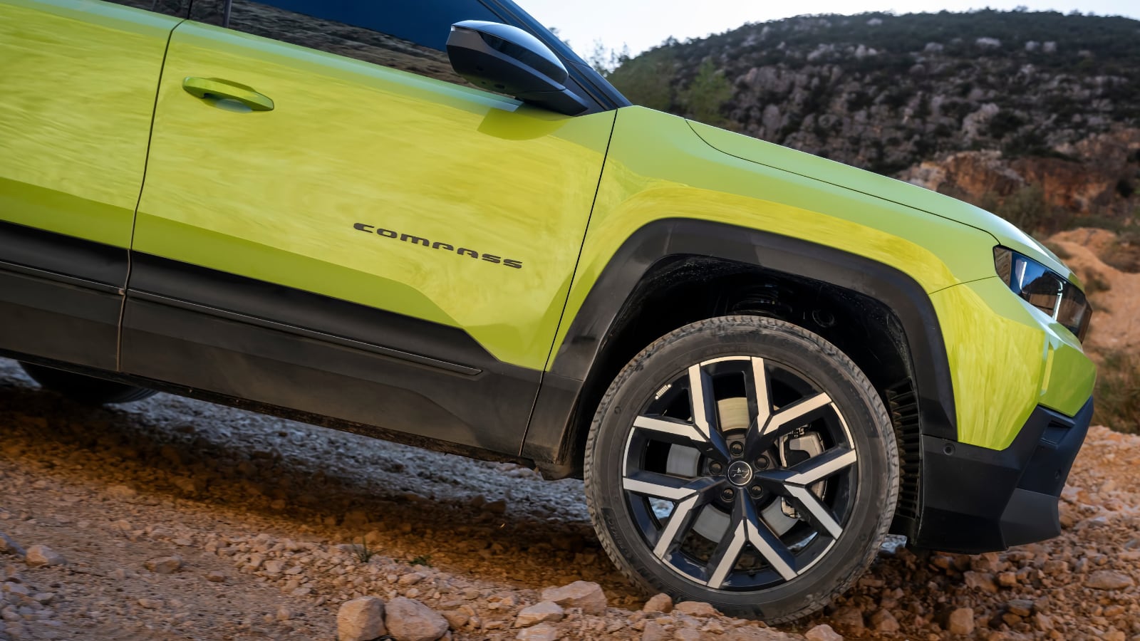 Luego, tenemos un coche también más grande, mide 4,54 metros de largo, es decir, casi 15 centímetros más, y eso le permite ofrecer un empaque visual mucho mayor. Tenemos igualmente nuevos colores de carrocería como es el caso de este verde pistacho que la verdad es que es súper llamativo y que, cuando lo veas por la calle, vas a saber que es el nuevo Compass.