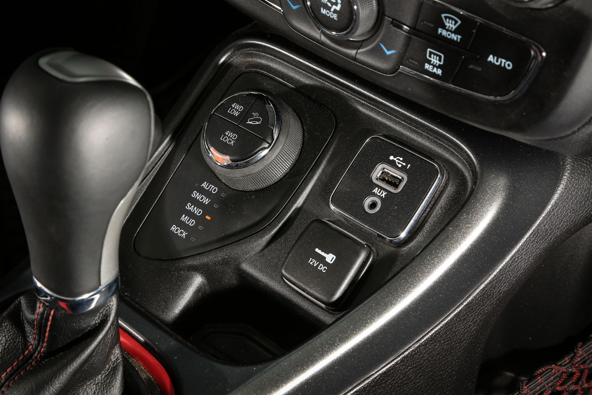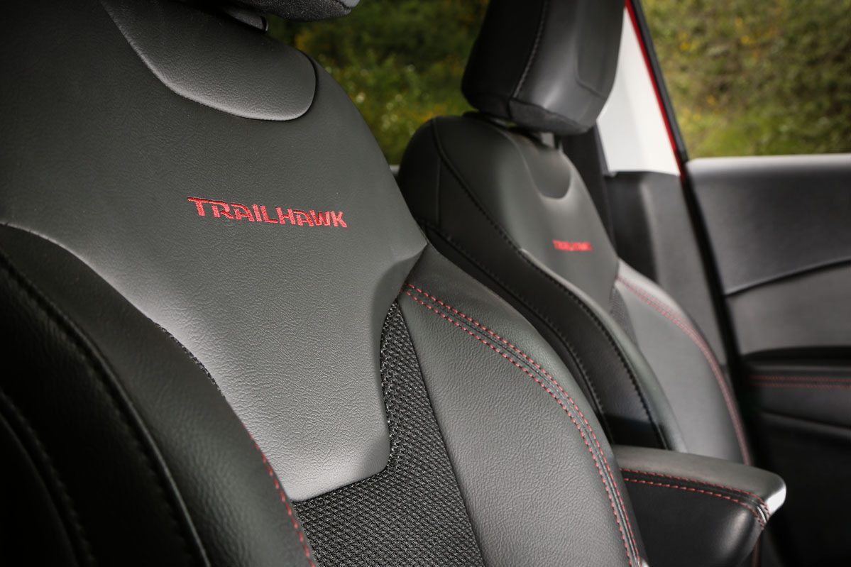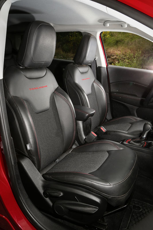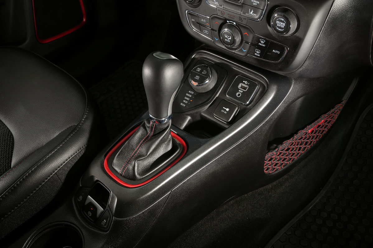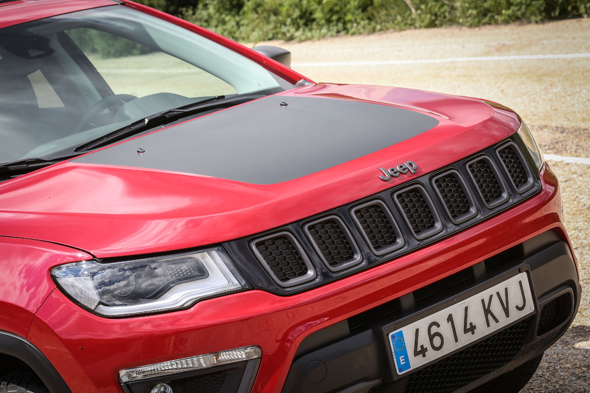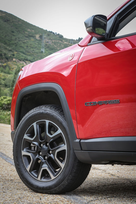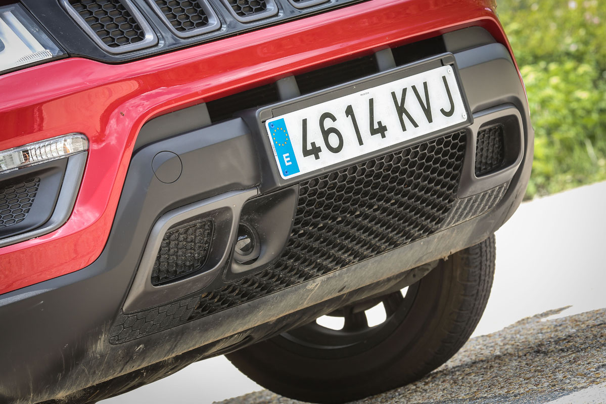 Fue en San Antonio, Estados Unidos, durante la presentación internacional, donde tuve mi primer contacto con él. Allí descubrí su atractiva y a la vez distintiva imagen. Al ser la versión Trailhawk, equipaba, y equipa también en Europa, diferencias respecto al resto de la gama que mejoran aún más su capacidad off-road. Por ejemplo, su altura libre al suelo crece casi 2,5 centímetros, con lo que ahora suma 21,6 centímetros; los paragolpes de nuevo cuño conceden un mayor ángulo de ataque (30 grados) y de salida (33,6 grados) -el ventral es de 24,4 grados-. Se suman placas protectoras, un enganche en la zaga, neumáticos All Season con medidas 225/60 R17, rueda de repuesto de tamaño normal y, lo que es más importante, Selec-Terrain con Selec-Speed Control y Hill-Descent Control y el exclusivo modo de conducción 'Rocks'. Asimismo, la capacidad todoterreno también está garantizada por la desconexión del eje trasero. Porque los adhesivos exclusivos no mejoran su respuesta, pero le sientan genial e incrementan ese aspecto aventurero intrínseco en cualquier Jeep.