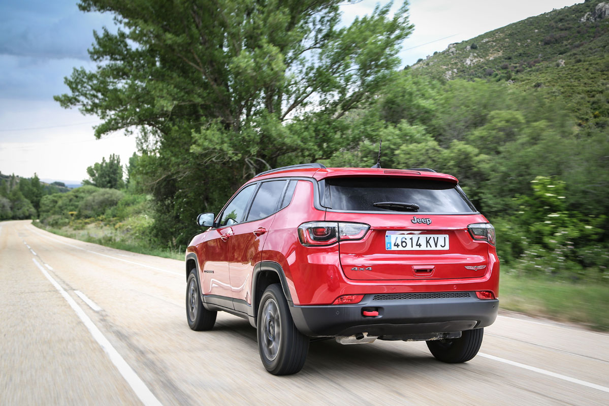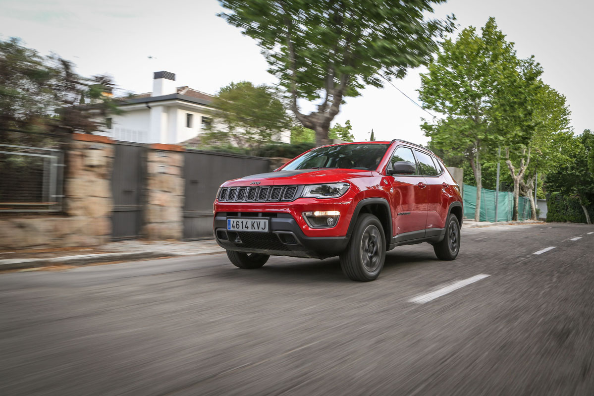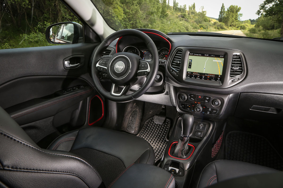 Respecto al cambio automático de nueve velocidades, al ser de convertidor de par no es tan rápido como uno de doble embrague. A pesar de ello, no se muestra lento. Además, tiene la suavidad de la que carecen los de doble conjunto y evita los tirones típicos que suelen brindar estas transmisiones al iniciar la marcha. El Compass no equipa levas en el volante, aunque sí permite cambiar de velocidad desde la palanca con la misma disposición de un coche de competición: subir de marcha con un toque hacia abajo y bajar con uno hacia arriba.