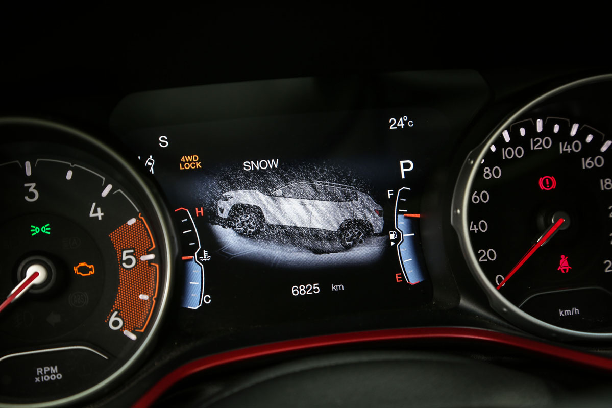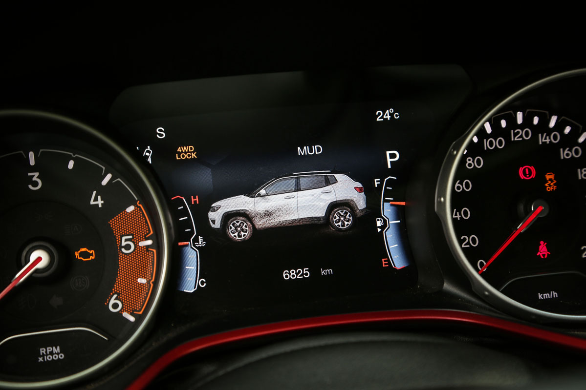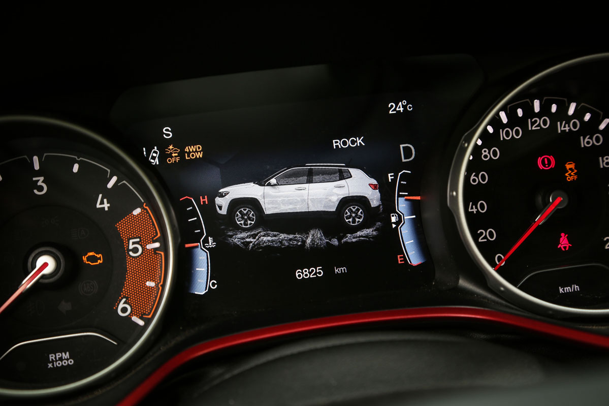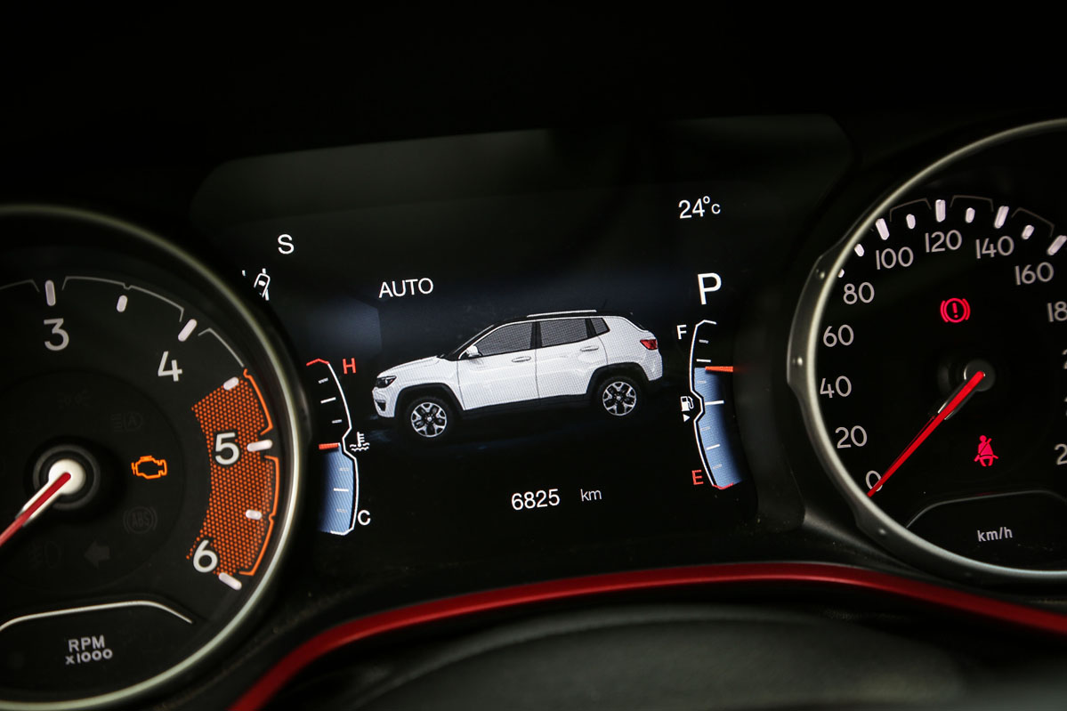 Respecto al cambio automático de nueve velocidades, al ser de convertidor de par no es tan rápido como uno de doble embrague. A pesar de ello, no se muestra lento. Además, tiene la suavidad de la que carecen los de doble conjunto y evita los tirones típicos que suelen brindar estas transmisiones al iniciar la marcha. El Compass no equipa levas en el volante, aunque sí permite cambiar de velocidad desde la palanca con la misma disposición de un coche de competición: subir de marcha con un toque hacia abajo y bajar con uno hacia arriba.