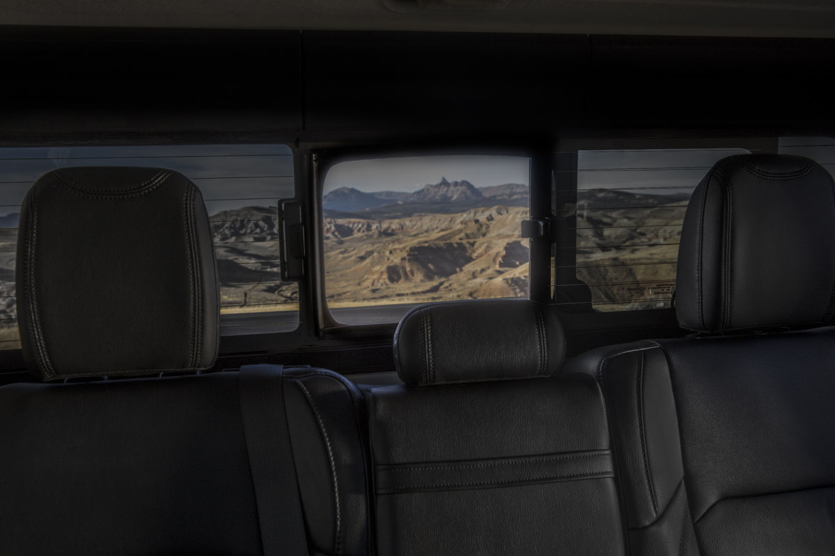 En los asientos traseros hay muchísimo espacio para las rodillas. Encuentro plásticos duraderos para proteger la parte de atrás de las plazas delanteras; y en el centro están las salidas de la climatización, los elevalunas eléctricos traseros, varias tomas de USB, un enchufe y un par de espacios para botellas o vasos. Los asientos tienen poco apoyo lateral, pero sí asideros para cuando hagamos una conducción offroad.