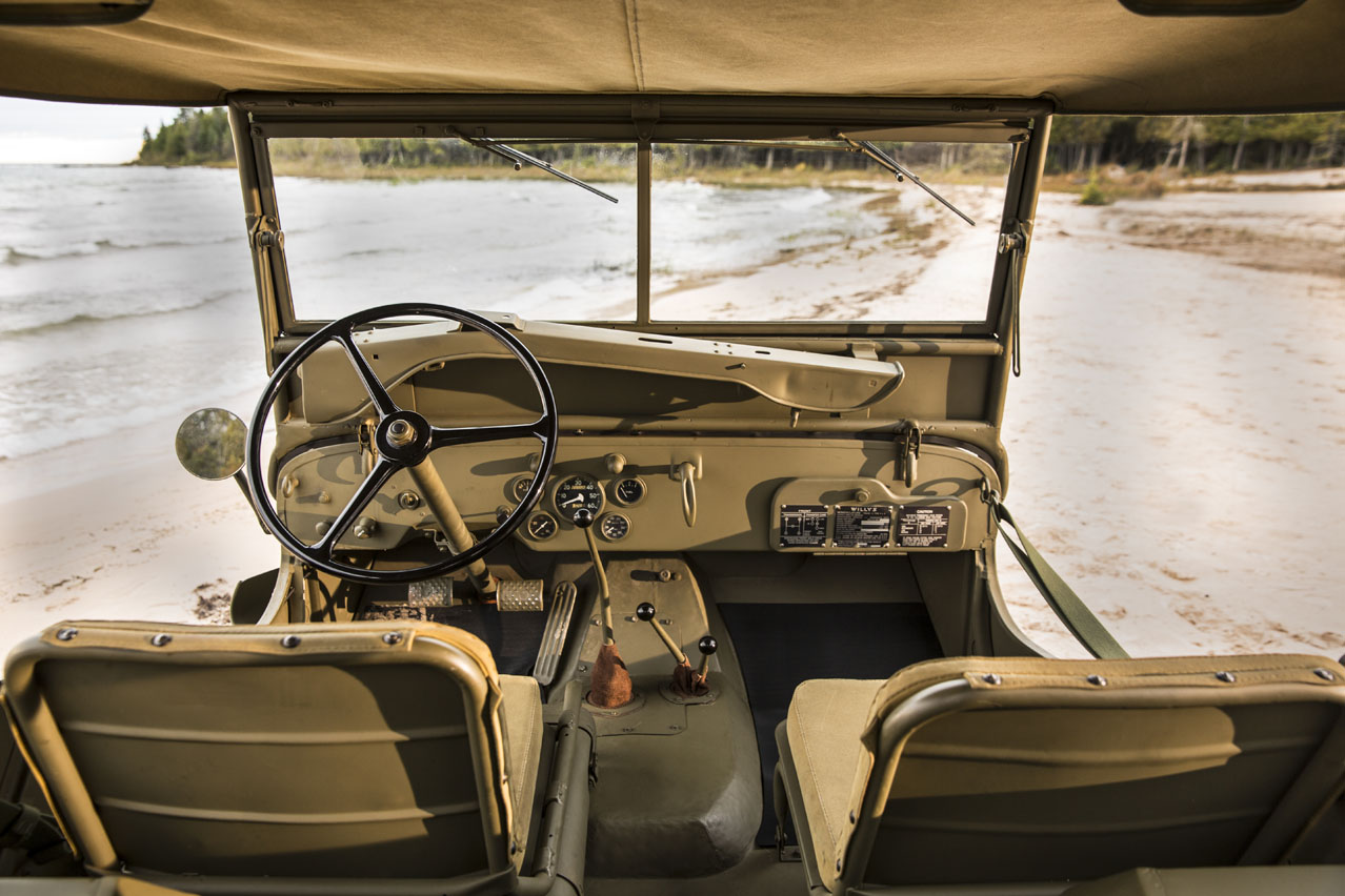 Si lo habéis visto en vivo, habréis comprobado lo pequeño que es comparado con los Jeep Wrangler actuales. Mide 3,36 metros de longitud, menos que un Suzuki Jimny (prueba), y cuando te pones al volante te das cuenta de que el concepto de “ergonomía” no entró en el pliego de condiciones. El asiento no es demasiado incómodo, pero su respaldo es muy corto y no sujeta nada. No hay tampoco un arco anti-vuelco, cinturones de seguridad ni puertas que eviten que salgas despedido cuando un bache te zarandee violentamente, cosa que ocurrirá tarde o temprano. Pero hoy no se trata de buscar las cosquillas al tatarabuelo del Jeep Wrangler, sino de viajar a 1941 y tratar de entender la revolución que supuso este nuevo concepto.