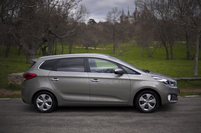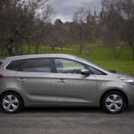 Exteriormente, el KIA Carens 2013 ha visto reducidas todas sus medidas con respecto a la generación anterior. Es dos centímetros más corto, 1,5 más estrecho y cuatro centímetros más bajo pero, tal y como hemos podido corroborar con esta prueba, esto no ha repercutido en el espacio disponible en el habitáculo. Al contrario, gracias a que la distancia entre ejes ha aumentado cinco centímetros, las medidas interiores son ligeramente mejores y sigue disponiendo de siete plazas –tercera fila opcional por 700 euros en todos los acabados excepto en el más equipado-.