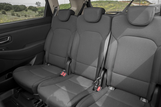 Como el KIA Carens 2013 de la prueba es un vehículo enfocado a la familia, vamos a empezar analizando su habitáculo. En los dos primeros niveles de acabado –Concept y Drive-, la tercera fila de asientos es opcional. En cualquier caso, todas las plazas tienen butacas individuales, por lo que existe un amplio margen para adaptar el habitáculo a lo que necesitemos en cada momento. Si decides elegir la última fila de asientos, los pasajeros agradecerán la regulación longitudinal que ofrece la segunda fila, lo que te permitirá ampliar el espacio disponible para las piernas –o el maletero, en caso de que la tercera fila esté abatida-. Además, cuenta con numerosos huecos para dejar objetos por lo que estos no estarán moviéndose de un lado a otro cuando haya curvas.