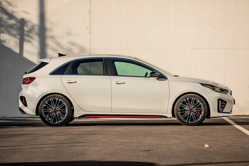 El lateral está protagonizado por el marco cromado de las ventanillas, estribos en negro y rojo, llantas de aleación de 18 pulgadas, pinzas de freno de color rojo y una altura reducida en 5 mm con respecto al Ceed estándar. Mientras tanto, la parte posterior integra un parachoques rediseñado siguiendo el patrón del delantero, un sutil difusor en negro brillante, un pequeño spoiler, salidas de escape y el mencionado emblema ‘GT’.