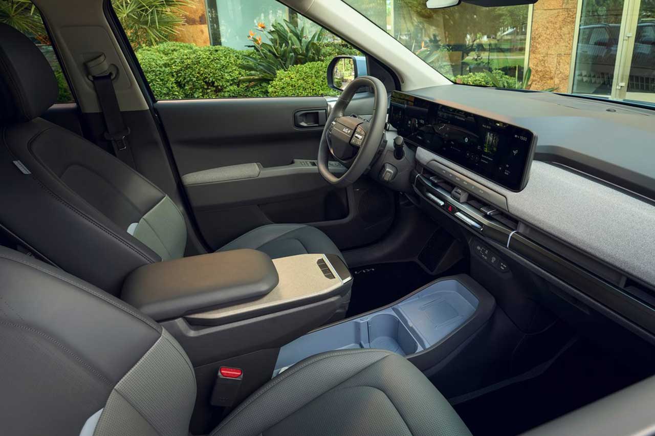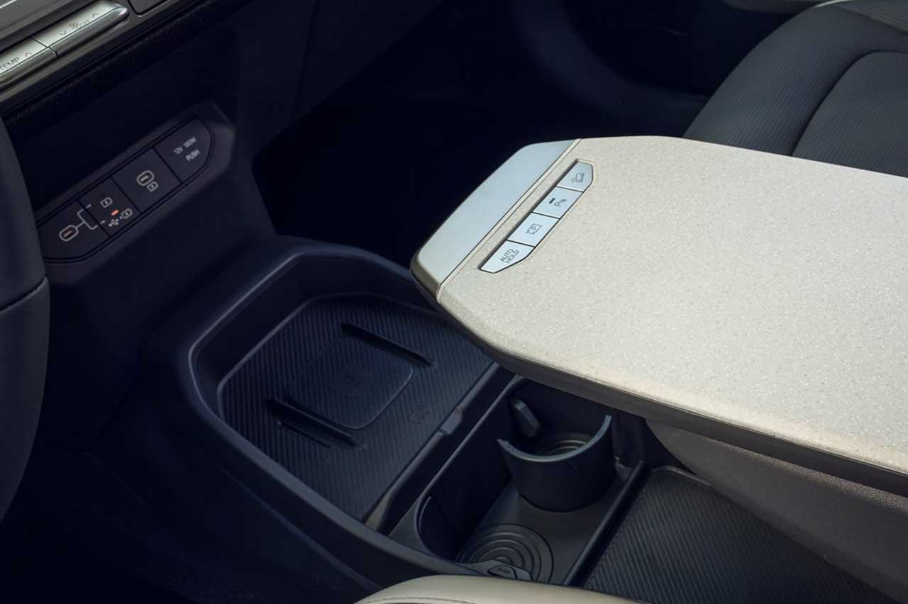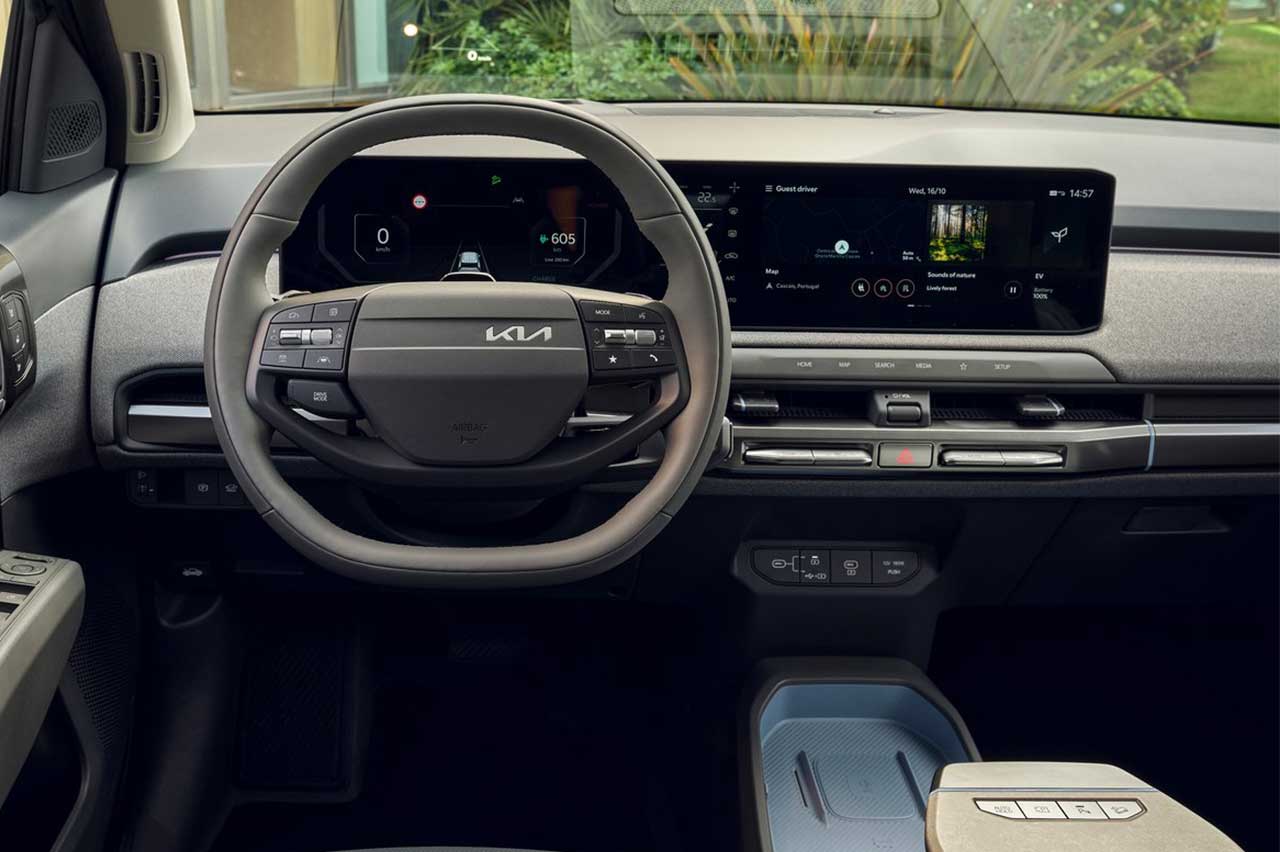 Por dentro el Kia EV3 es una pasada. Prácticamente todo está de notable alto. Para empezar, no hay negro brillante por ninguna parte, lo que evita por mucho la suciedad y el polvo. Además, hay controles físicos tanto para lo más importante del climatizador como para el sistema de audio, que por cierto suena genial dado que está firmado por el especialista Harman/Kardon.