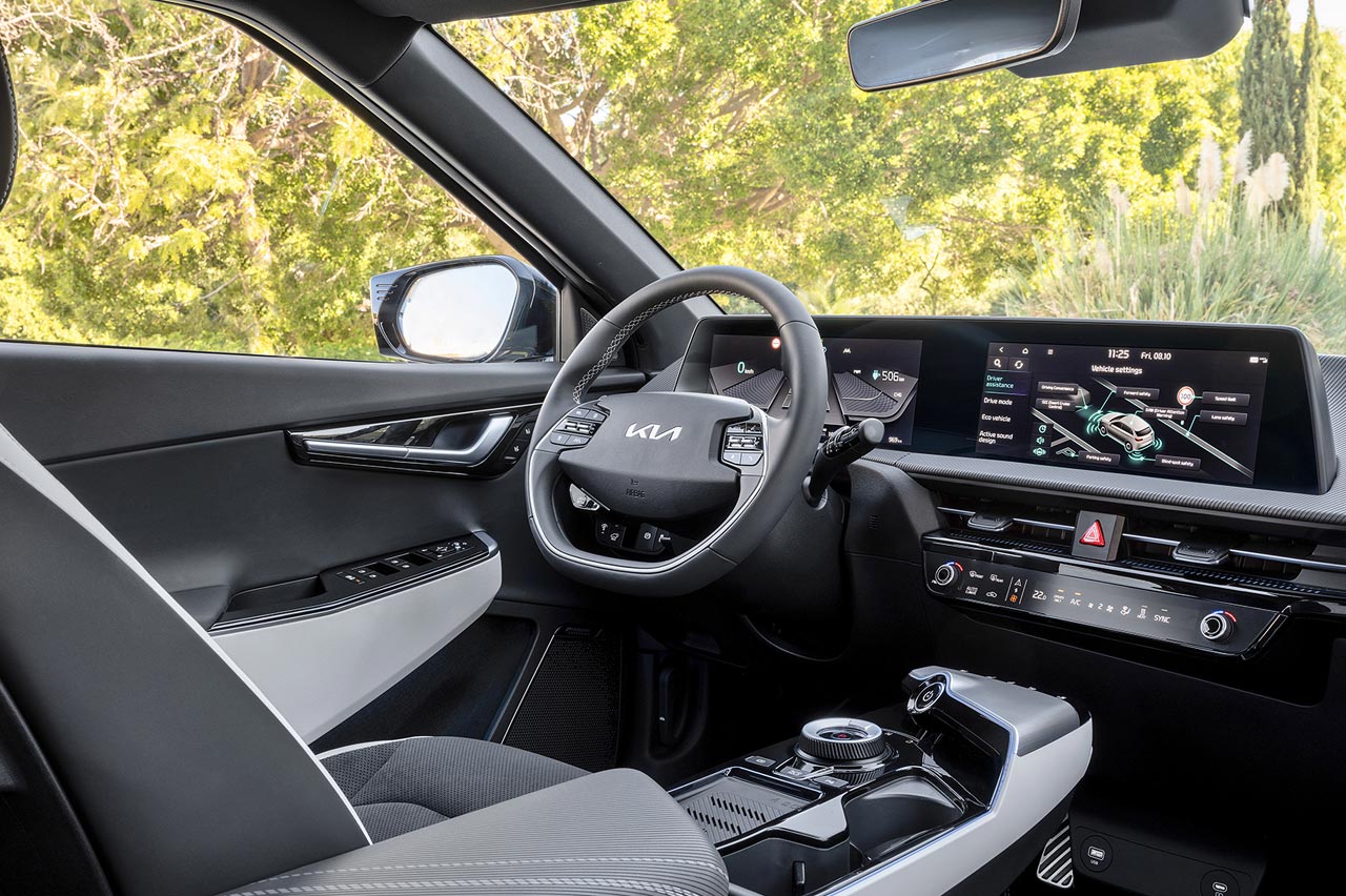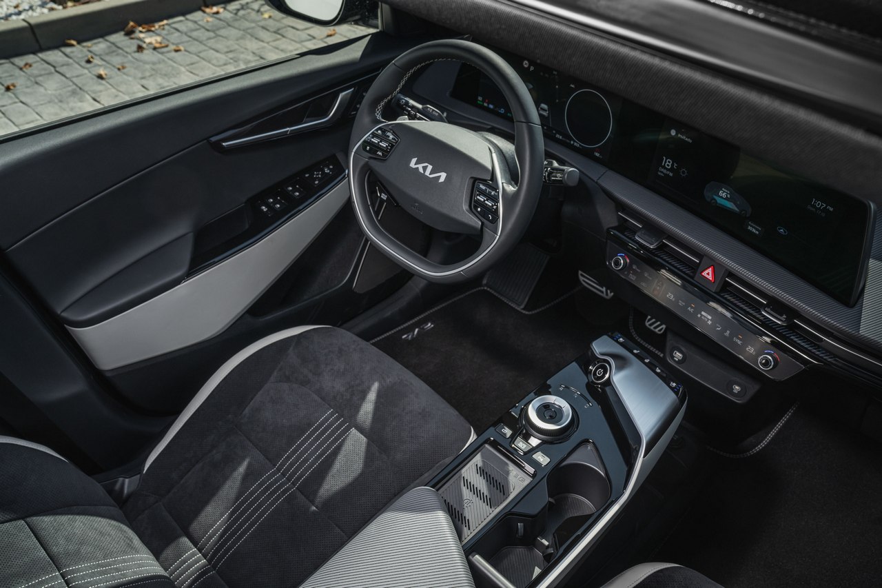 El empleo de una plataforma específica para coches eléctricos, llamada E-GMP y usada también en el (prueba) Hyundai Ioniq 5, se nota mucho en la habitabilidad. Porque con una distancia entre ejes de 2,9 metros, hay mucho espacio disponible en el interior. En la segunda fila de asientos, por ejemplo, los ocupantes gozan de una distancia considerable hasta los asientos delanteros.
