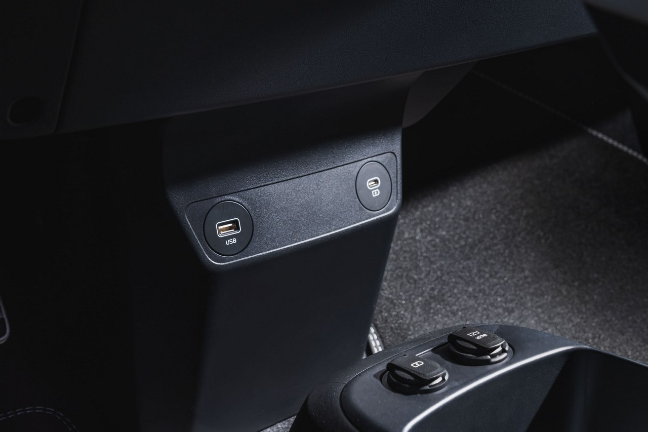 Pero la posición de la batería también tiene su lado negativo. Porque al ir ubicada ahí, la distancia que hay entre el suelo y el borde inferior de los asientos es demasiada pequeña. Esto no importa mucho en el puesto de mando, pues al final son los pedales los que mandan sobre la posición, pero en el resto de plazas te obliga a estirar las piernas si quieres que estas apoyen completamente sobre la banqueta. Aunque para ser justos hay que decir que esta misma circunstancia se da en casi todos los eléctricos.