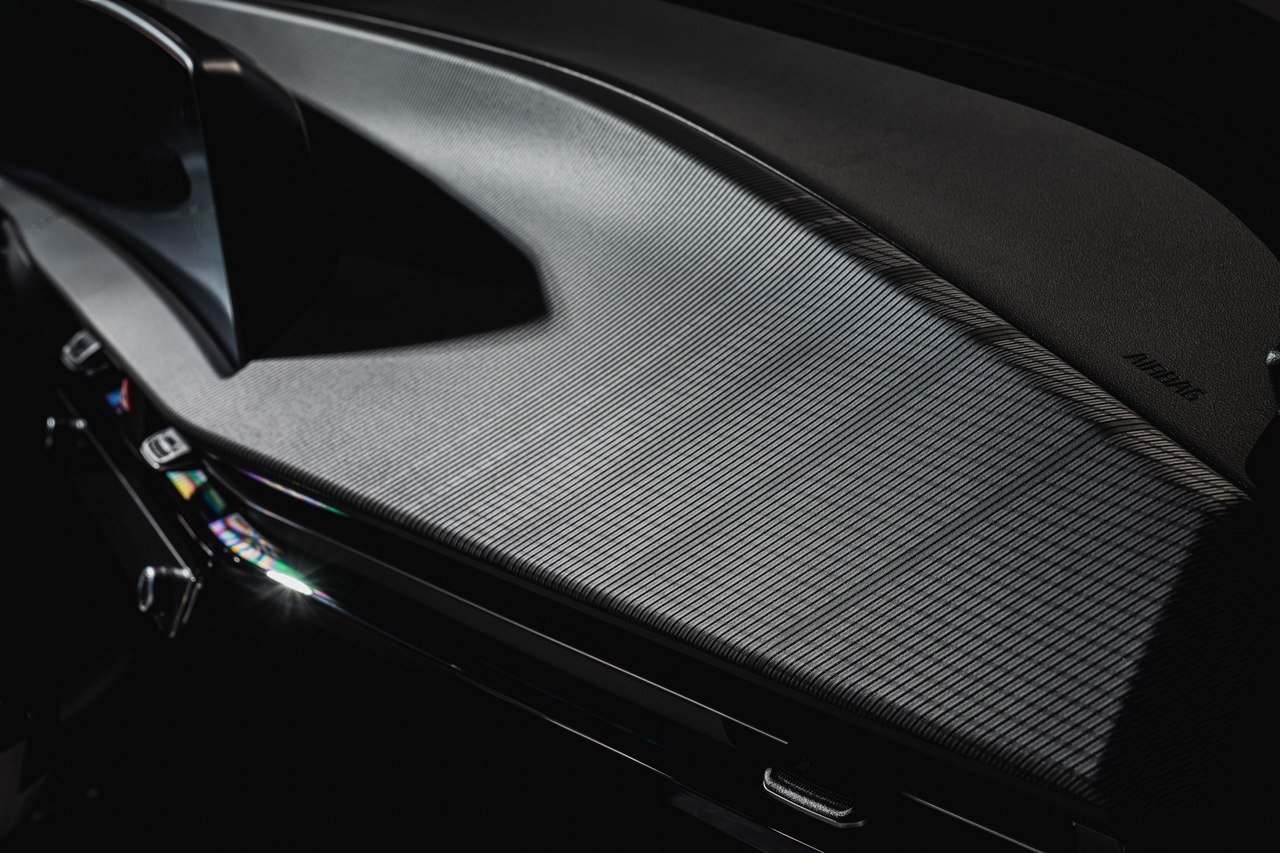 El frontal, con ese enorme capó que hace las veces de aletas o esos faros de ledes, es verdaderamente llamativo. Lo mismo se puede decir de la vista lateral, donde se aprecian los amplios pasos de ruedas (con llantas de 20” en la unidad de las fotos), unos tiradores de las puertas que quedan ocultos cuando no son necesarios o una pronunciada caída del techo en la zaga.