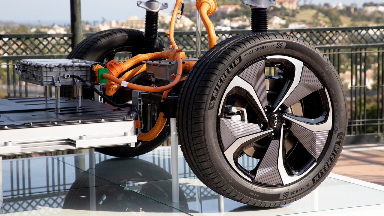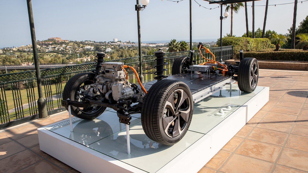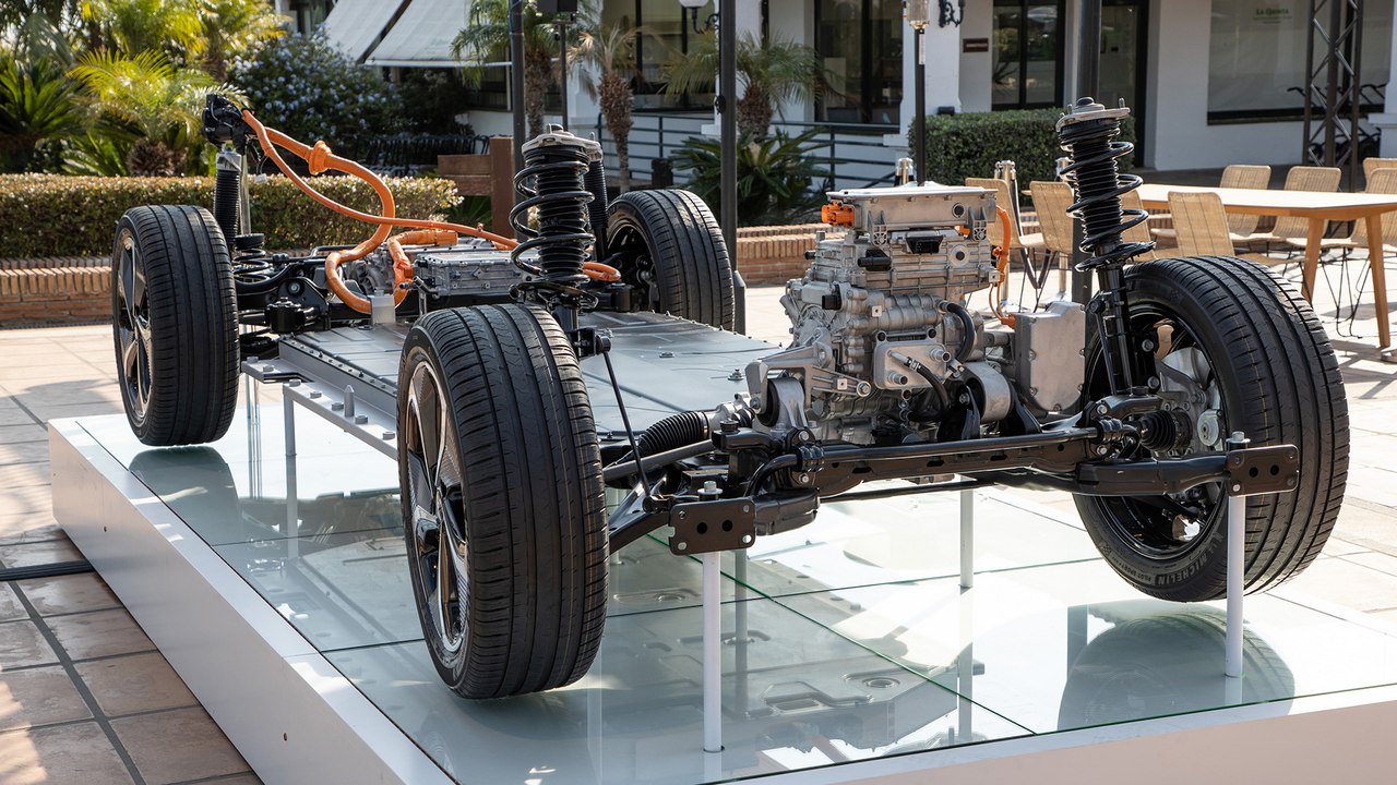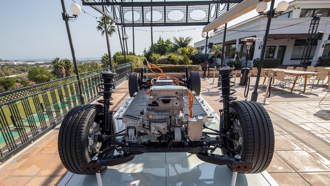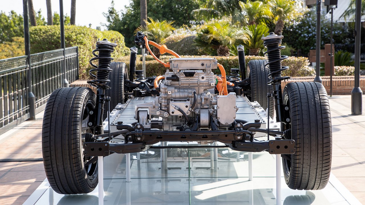 Gracias a la ubicación de la batería, que se sitúa debajo del piso del habitáculo, tiene un centro de gravedad muy bajo. Esto le ayuda a disimular su peso al, por ejemplo, realizar un cambio de dirección, maniobra que realiza sin grandes inclinaciones laterales. No es que sea muy ágil, porque apuesta más por el confort de marcha, pero transmite sensación de seguridad en todo momento.