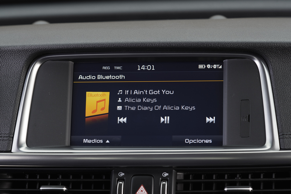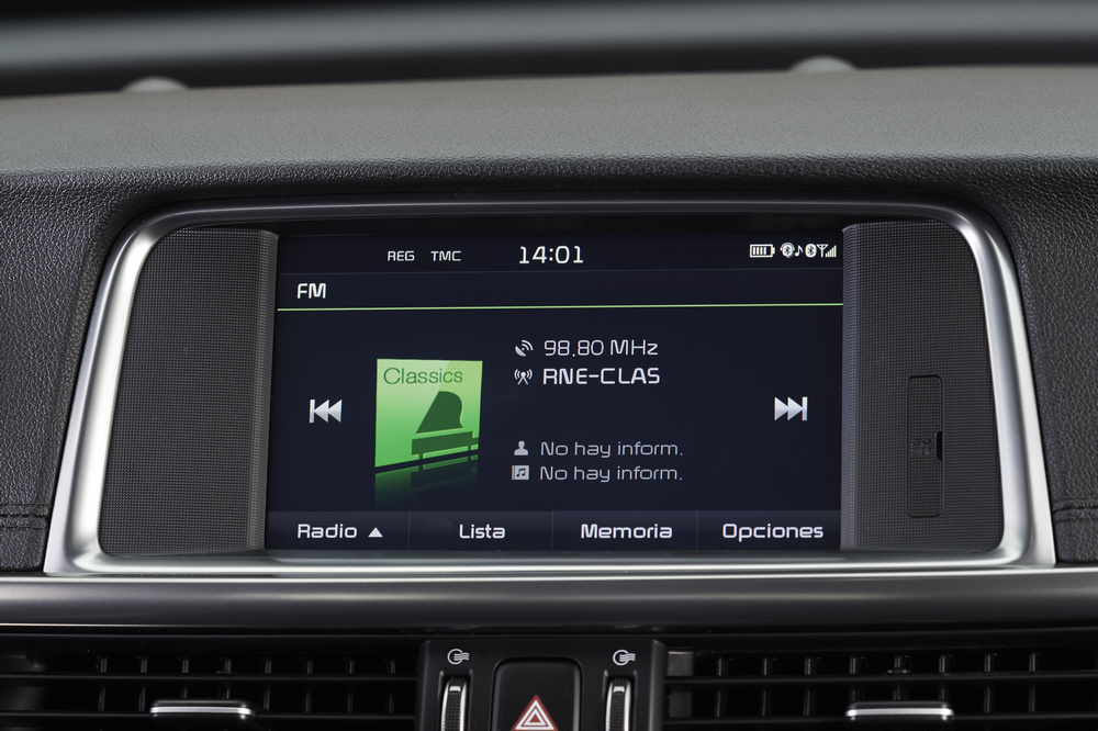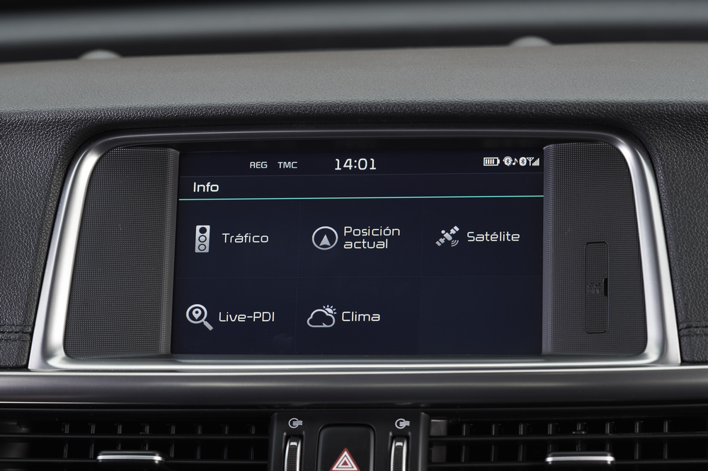 En cuanto al equipamiento, uno de los puntos fuertes de esta berlina, hay tres niveles disponibles: Concept, Drive y Emotion. Empezaré hablando del más bajo, por llamarlo de alguna forma, ya que como verás a continuación, tiene prácticamente todo lo que puedes necesitar: siete airbags, freno de mano eléctrico, Start/Stop, faros antiniebla, luces diurnas de LED, volante y pomo de cambios de cuero, cuadro de mandos con pantalla de 3,5 pulgadas, navegador con servicios TomTom y pantalla de 7 pulgadas (con actualizaciones gratuitas durante siete años), cámara de marcha atrás, climatizador automático de dos zonas, control de crucero con limitador de velocidad y sensor de iluminación y de lluvia. El precio del Optima con este acabado es de 21.704 euros, incluyendo los descuentos promocionales pero no el Plan PIVE.