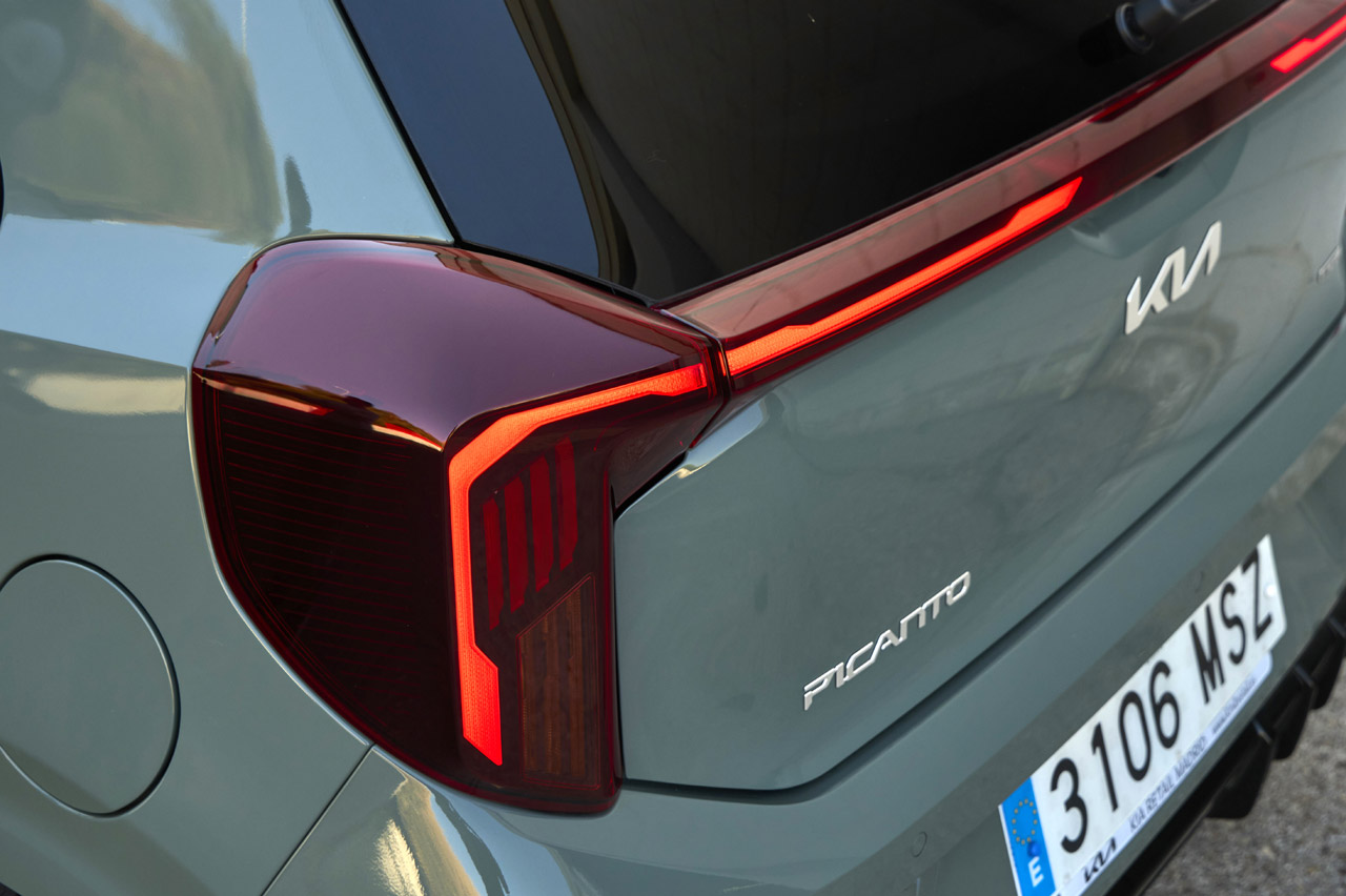 En la vista lateral no se aprecian grandes cambios más allá de lo referente a las llantas, que son de 14” en las variantes Concept y Drive y de 16” en el que nos ocupa, el Picanto GT-Line. Donde sí hay grandes cambios es en la zaga, donde nos encontramos con unos pilotos que recurren a tecnología led y que además están unidos de nuevo mediante una tira luminosa (de serie solo en GT-Line).