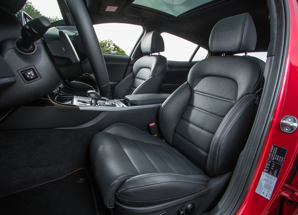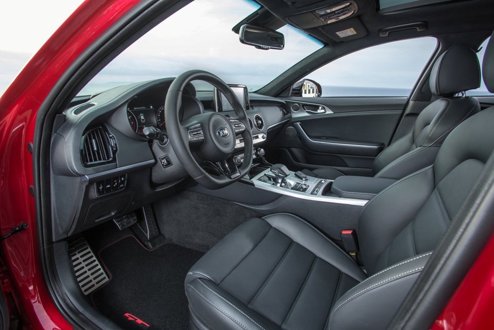 Por su parte, KIA divide los niveles de acabado del Stinger en cuatro diferentes –Style, xTreme, GT Line y GT-, los cuales incluyen un completo equipamiento de serie como acceso y arranque manos libres, sensores de aparcamiento, luces y lluvia, faros de LED completos, el mencionado paquete ADAS de seguridad, sistema multimedia con pantalla táctil de 7 y 8 pulgadas y navegador, techo solar, tapicería de piel o Nappa, asientos regulables eléctricamente con función memoria y climatización completa, volante calefactado, Head-up Display, cámara de visión 360º, punto de carga inalámbrica para smartphones, sistema de sonido premium firmado por Harman/Kardon de 720 W y 15 altavoces, y portón trasero eléctrico, entre otros. Están disponibles nueve colores diferentes, seis de ellos propios del Stinger, y cuatro tapicerías: piel sintética, piel, cuero Nappa y cuero Nappa rojo.