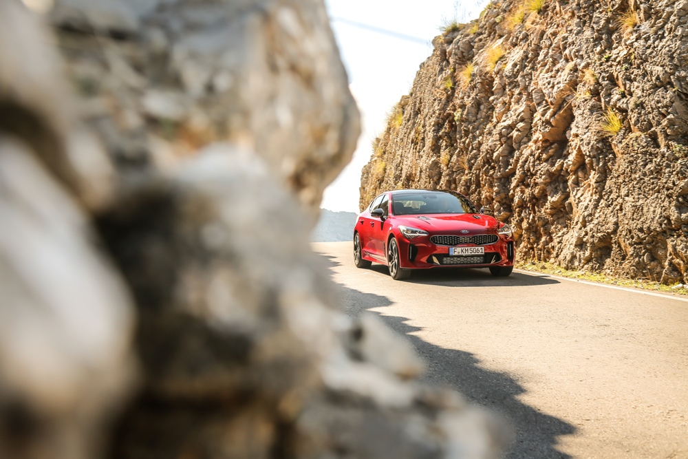 El paso por curva es rápido, se muestra firme y con gran aplomo, con buenos cambios en los puntos de apoyo y una dirección realmente directa, aunque sin ser tan precisa como la que ofrece el Alfa Romeo 4C Spider (prueba), lo que supondría renunciar a cierto grado de comodidad y practicidad, todo sea dicho. Con un peso en seco de 1.834 kilogramos, el Stinger no hace gala de ser un coche ligero, pero en movimiento es inapreciable, mientras que los 370 CV lo mueven con soltura.