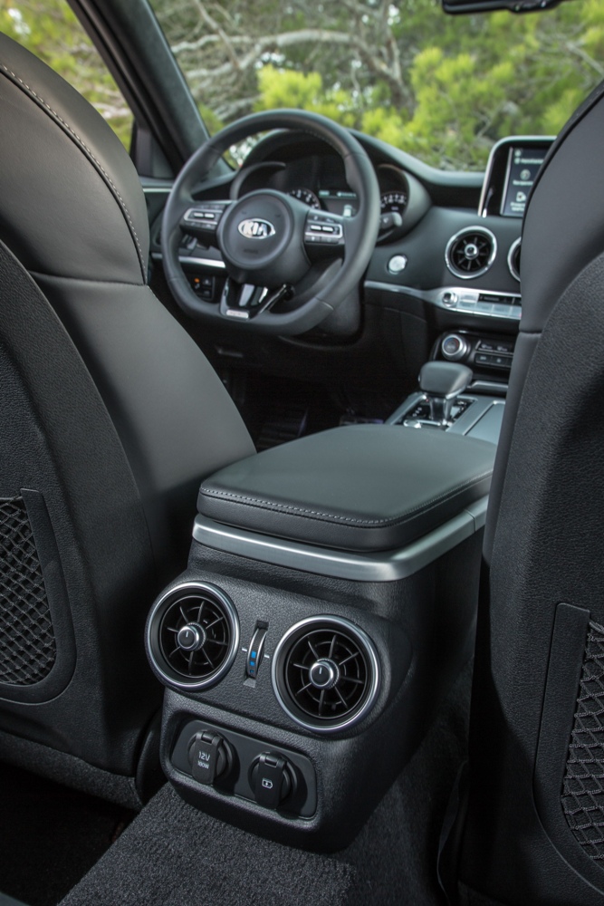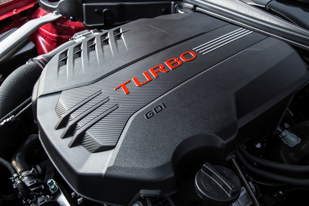 En la gama de motorizaciones, el KIA Stinger está disponible con tres propulsores diferentes. Una unidad diésel 2.2 CRDi de 200 CV y 440 Nm de par, que pasa de cero a 100 km/h en 7,6 segundos y alcanza una velocidad punta de 230 km/h, así como dos versiones de gasolina. La de acceso a gama, un bloque ‘Theta’ de 2.0 litros y cuatro cilindros turbo con 255 CV y 353 Nm de par, el cual pasa de cero a 100 km/h en 6 segundos y alcanza una velocidad punta de 240 km/h, mientras que en la cúspide de la gama encontramos el conocido motor ‘Lambda II’ V6 de 3.3 litros con 370 CV y 510 Nm de par, con un paso de cero a 100 km/h en 4,9 segundos y una punta de 270 km/h. Todos los motores se asocian a una caja de cambios automática de 8 velocidades desarrollada íntegramente por KIA que debuta con un convertidor de par con absorción por péndulo centrífugo (CPA), reduciendo vibraciones torsionales en la transmisión. Por último, la potencia se canaliza al sistema de propulsión trasera con diferencial autoblocante opcional o tracción total con un control dinámico de par vectorial que hace un reparto que puede ir hasta el 100% en el eje trasero y hasta el 80% en el delantero.