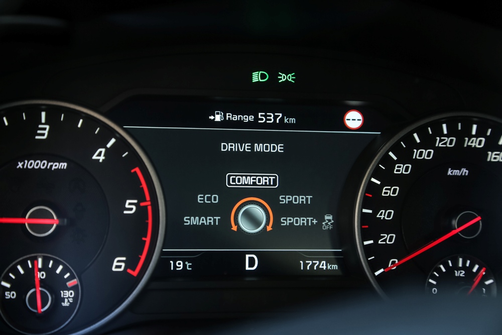 Sin embargo, me interesa conocer cómo se conduce en el día a día esta berlina de corte deportivo. Debes tener en cuenta que ofrece un motor V6 turbo de 3.3 litros, por lo que los consumos de combustible no son precisamente contenidos. KIA homologa un consumo en ciclo combinado de 10,6 litros a los 100 kilómetros, cifra que podemos alcanzar en una conducción tranquila, incluso demasiado relajada, aunque será fácil ver en la pantalla del cuadro de instrumentos una media de 12 litros una vez nos aventuramos a descubrir un poco más de lo que ofrece en sensaciones su propulsor.