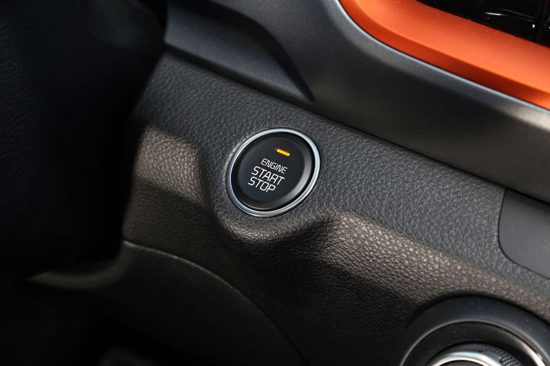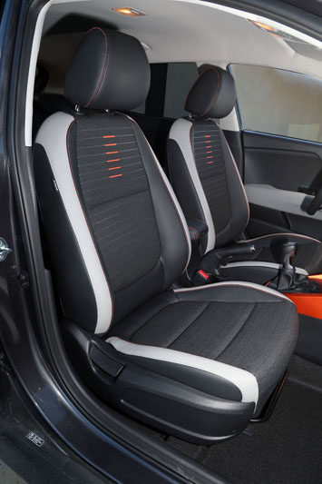 Sentado en la banqueta del conductor, donde compruebo que la posición no es elevada para tratarse de un SUV, algo que me satisface, observo que la calidad percibida es buena. Sí, es cierto que los plásticos duros están repartidos por todo el habitáculo, pero son suaves al tacto y están bien encajados. Además, las molduras brillantes en naranja y plata le dan un look moderno, perfecto para los potenciales compradores de este tipo de vehículo: los jóvenes. La consola central tiene pocos botones, pero los justos y necesarios, algo que se agradece sobremanera. Además, gracias al volante multifunción, cuya parte inferior está achatada, forma que no valoro positivamente, se pueden controlar multitud de tareas con la idea de no apartar la vista de la carretera. Y con esta misma intención se ha colocado la pantalla del sistema de infoentretenimiento de 7 pulgadas en la parte superior del salpicadero.