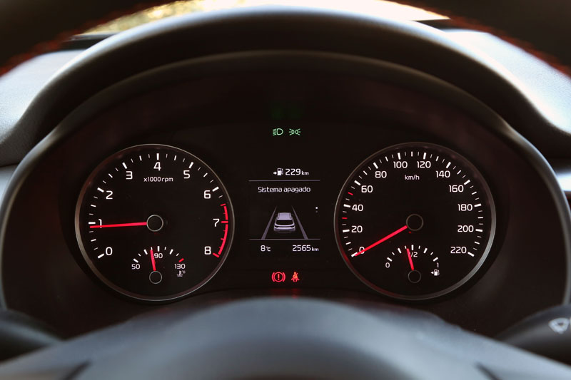 Es hora de comenzar la prueba dinámica del Stonic. Para ello pulso el botón de encendido y su tres cilindros comienzan a funcionar. ¿El sonido? El esperado al tratarse de un tricilíndrico, aunque algo menos refinado que, por ejemplo, un Ford Fiesta 2017 (prueba). También vibra cuando el coche está parado, otra característica de este tipo propulsores, pero esos movimientos desaparecen cuando se inicia la marcha. Lo mismo ocurre con su traqueteo.