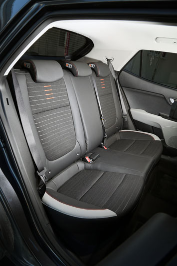 En lo que respecta al espacio de las plazas traseras, el KIA Stonic de la prueba ofrece un hueco holgado para las rodillas, justo para los hombros si viajan tres pasajeros, algo normal en este segmento, pero razonable para la cabeza; a personas con una altura de 1,78 metros como yo les sobran tres dedos para dar con el techo. Por su parte, el maletero cubica 332 litros, una cantidad media si lo comparamos con el resto de rivales. Lo bueno es que puede crecer hasta los 1.135 litros, que su forma es regular, con lo que facilita colocar la carga, y que su boca es muy ancha, aunque elevada.