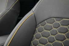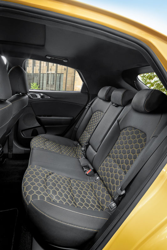 Nuestra unidad de pruebas del KIA XCeed adopta el 'Pack Yellow', con el que el habitáculo acoge elementos en color amarillo, como las molduras del salpicadero, los pespuntes de los paneles de las puertas o la atractiva trama de los asientos. La buena calidad percibida es la misma que la que consiguió conquistarme cuando probé el Ceed 2018, y los materiales, la mayoría gomosos -paneles de las puertas y salpicadero, excepto en la zona inferior a la altura de las rodillas-, también. Por cierto, buen detalle el de los pespuntes decorativos del salpicadero...