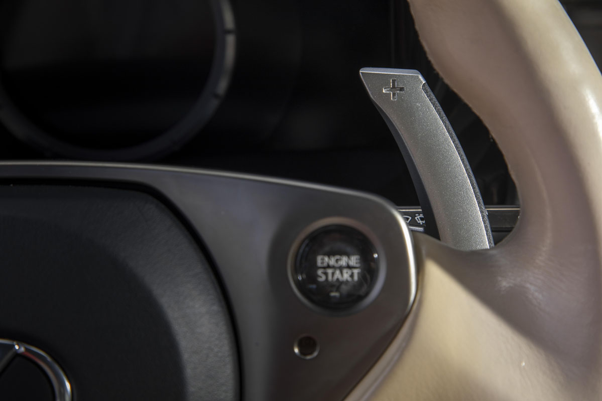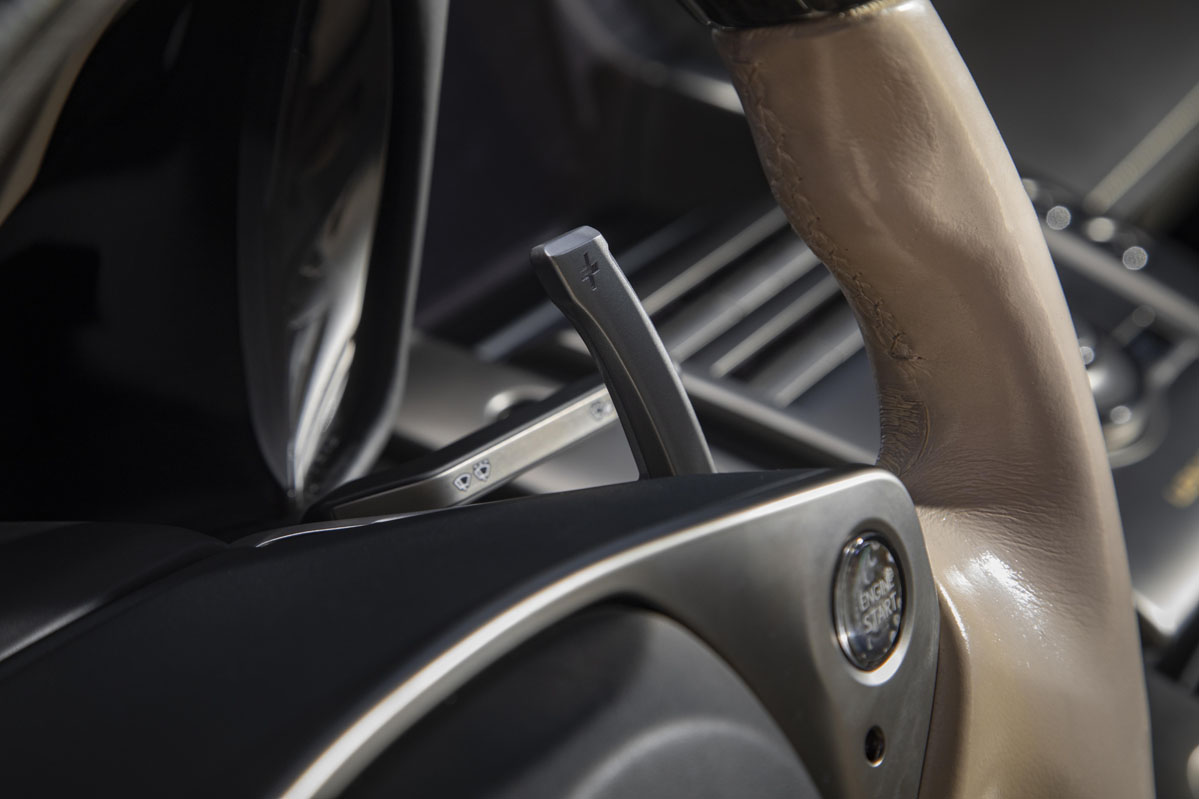 Al principio lo hago con un poco de timidez, pero el motor pide más al momento. Y se me olvida todo lo que no sea su sonido brutal (dejamos las bondades de los altavoces Mark Levinson específicos para otro día) y la increíble demanda de la caja de cambios, que me obliga a engranar una marcha tras otra. Esta operación tarda entre 0,2 y un segundo, dependiendo de la velocidad a la que hayas elegido que se realicen las transiciones; hay siete niveles. La suavidad del cuero que recubre las levas de magnesio tras el volante contrasta con la sacudida seca que recibe el cuerpo al pasar de una relación a la superior.