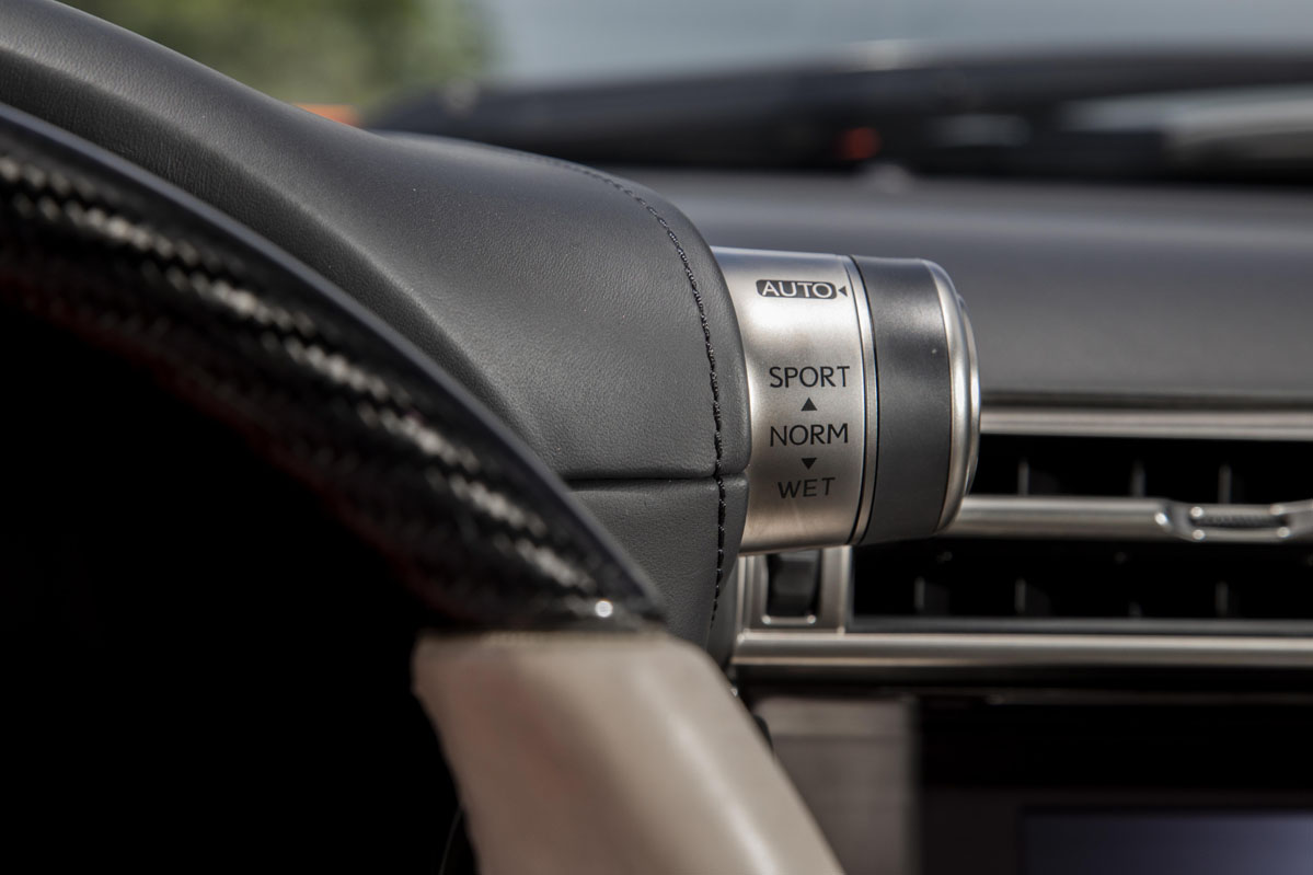 Si mezclas lo que te he contado hasta ahora con su potencia (seguro que no te habías olvidado de sus más de 500 CV), el resultado es un cóctel que, en manos poco adecuadas, resulta tan inflamable como el desinfectante que te echas en el supermercado. Por eso, buena parte de las más de 100 patentes específicas que se registraron para el LFA fueron de seguridad. Ahí están, por ejemplo, su cinturón con airbag incorporado y su ESP con tres posiciones: 'Normal', 'Power' (para sacar lo mejor de este coche) y 'Wet', el modo adecuado cuando el asfalto está mojado. Como el día de nuestra prueba.