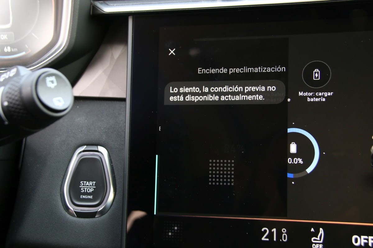 En marcha lo primero que notarás es, como te decíamos, que es un coche pesado sobre todo para moverte por ciudad y carreteras secundarias repletas de curvas en donde los cambios de apoyo serán demasiado acusados. En autopista, no obstante, el rodar será tranquilo y sosegado, tirando a confortable. Un detalle que tampoco nos ha gustado, el tacto del freno, propio de un phev con un recorrido esponjoso al principio que no da sensación de certero. Además, con el modo B de la palanca de cambios no solo se aumenta la intensidad de la frenada sino que el propio coche va gestionándolo de manera automática (se llega a mover en marcha).