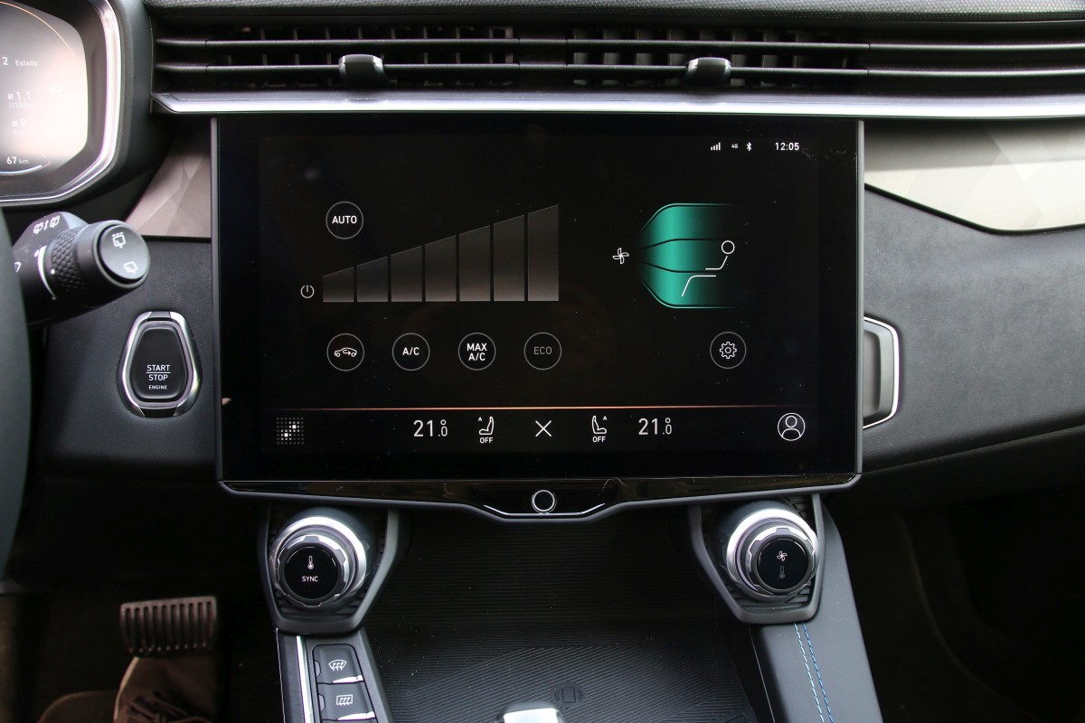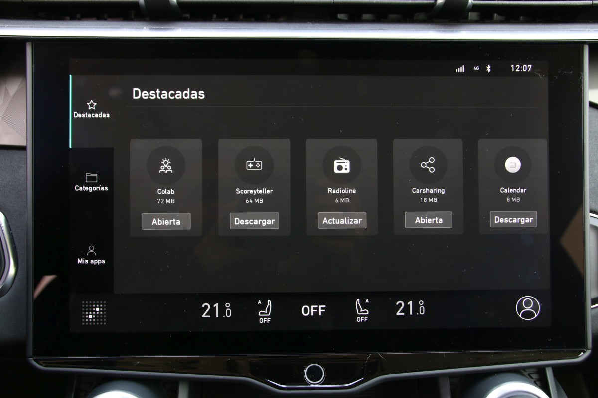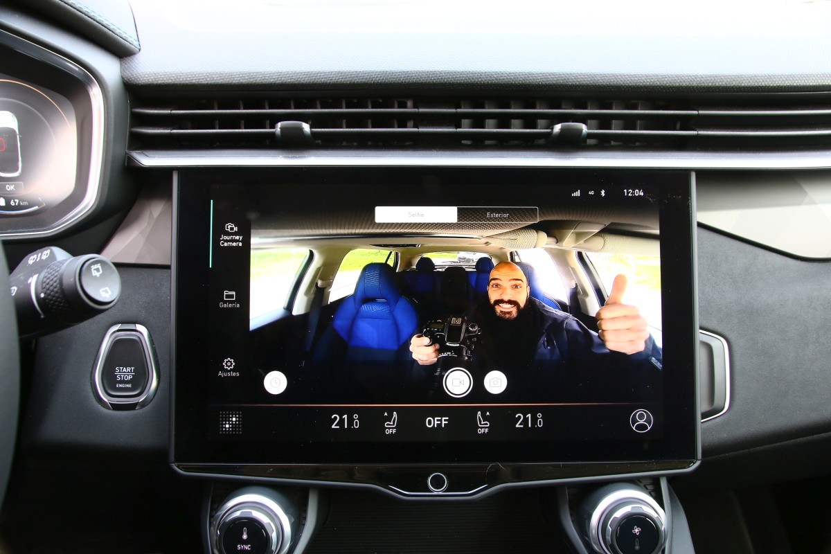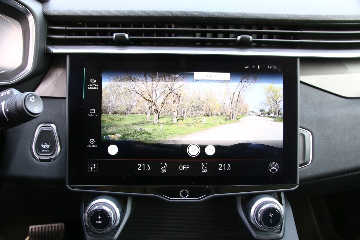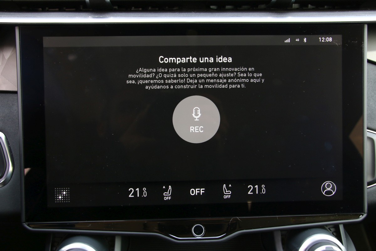 En cuanto al climatizador, luces y sombras porque si bien tenemos dos mandos físicos para aumentar la temperatura y la intensidad amén de botones para el desempaño de las lunetas, cambiar el caudal de aire, apagarlo o encenderlo del todo así como utilizar la función bizona se realizan desde la pantalla. Sin salir del monitor, ciertas curiosidades, puedes descargarte aplicaciones y ponerlas en el menú principal; activar una cámara que haga fotos o video tanto del exterior como del interior e incluso existe un comando que te permite mandar mensajes a la central ya sea “alguna idea para la próxima gran innovación o solo un pequeño ajuste”. Pueden ser anónimos pero sirven para “construir la movilidad” para nosotros.