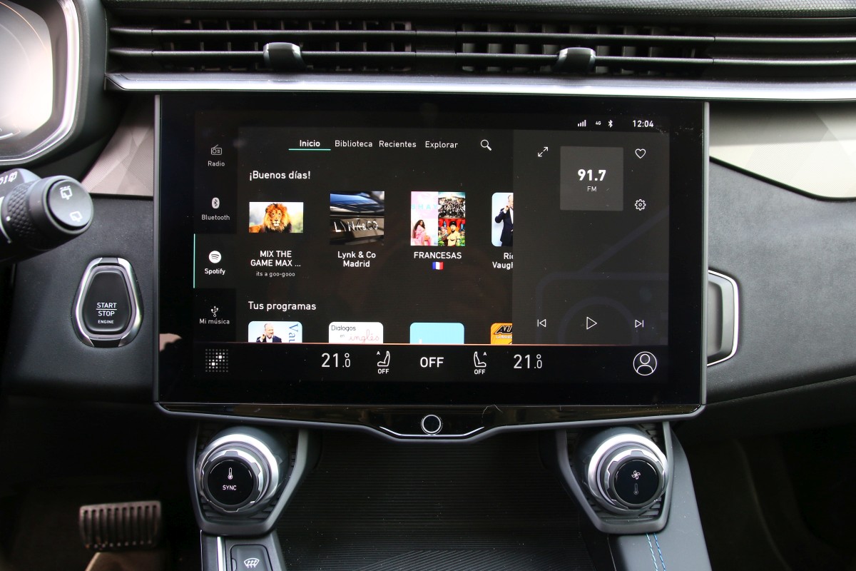 Para que te hagas una idea es al estilo Tesla, sin ser tan grande claro, pero incrustando en diferentes submenús las funciones del vehículo desde el navegador hasta Apple CarPlay y Android Auto (inalámbricos por cierto), ordenador de a bordo con diagramas de energía, asistentes de seguridad e incluso Spotify integrado. Es bastante rápida pero ello no quita para que llegar a nuestro destino sea, algunas veces, engorroso. Para ello cuenta con un asistente vocal que responde al nombre de “Hey Frank” con el que poder interactuar pero no cubre todas las funciones.