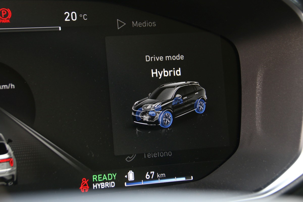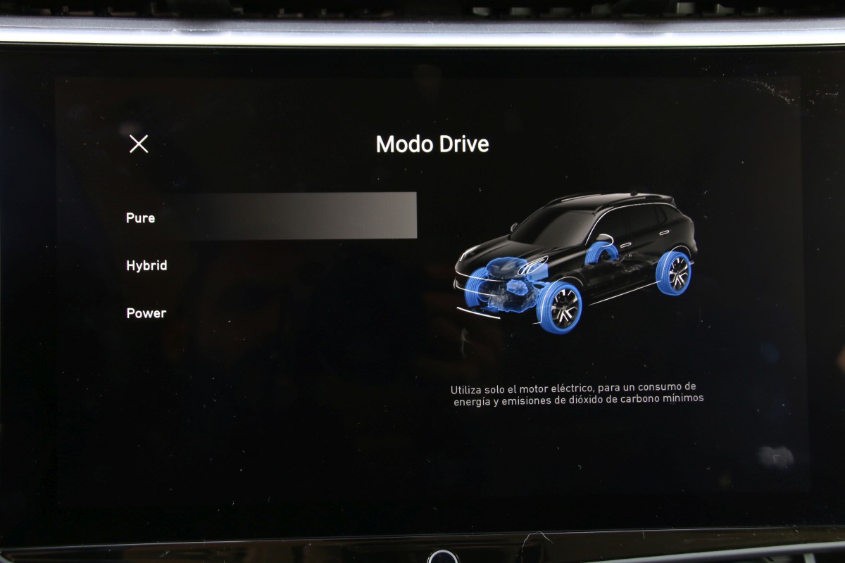 Todo se gestiona mediante una caja de cambios automática de doble embrague y siete relaciones mientras que el motor eléctrico se nutre de la energía almacenada en una batería de iones de litio de 14 kWh de capacidad con la que puede homologar hasta 69 kilómetros en modo cero emisiones. Rango que se torna como su mejor virtud ya que pese al excesivo peso será relativamente sencillo que nos movamos en el ámbito de los 55 a 60 kilómetros. Para gestionar cada uno de los programas contamos con un selector de modos situado a la derecha del cambio que nos permite escoger entre el Pure (100% eléctrico), Hybrid (automático) y Power (máximo rendimiento).