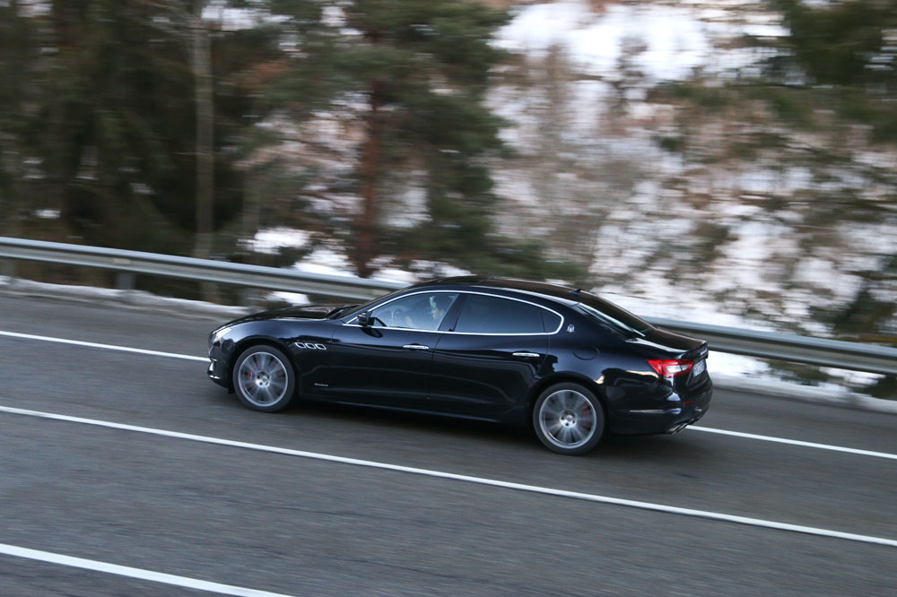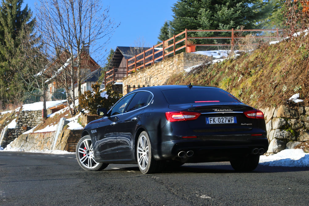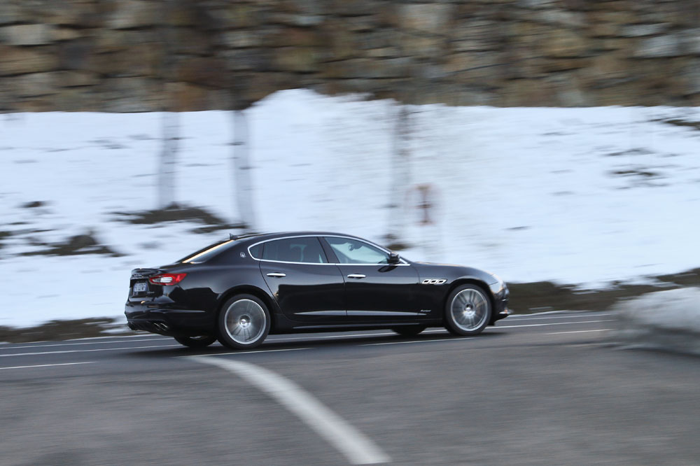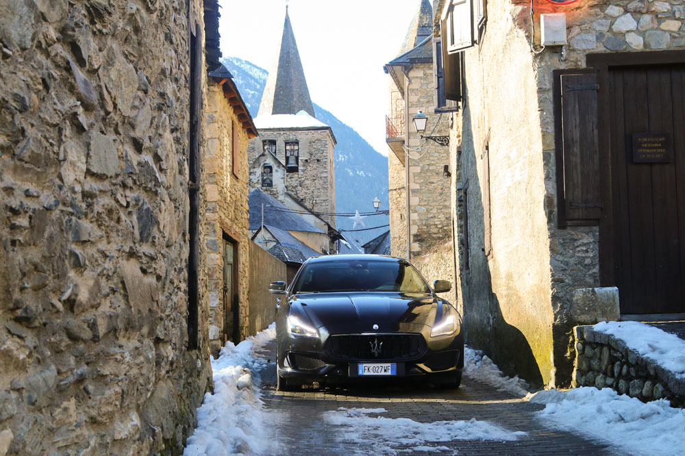 No diré que se sienta ligero, pero en un tramo de curvas, en el corazón del Pirineo, se comporta de una manera noble y precisa. Estoy seguro que una versión con un potente motor de gasolina y más orientada hacia la conducción, como el Maserati Quattroporte GTS, puede ser realmente divertida a sus mandos. En este caso, es un coche perfecto para viajar con estilo, ya sea en el asiento del conductor como en el asiento trasero leyendo la prensa diaria.
