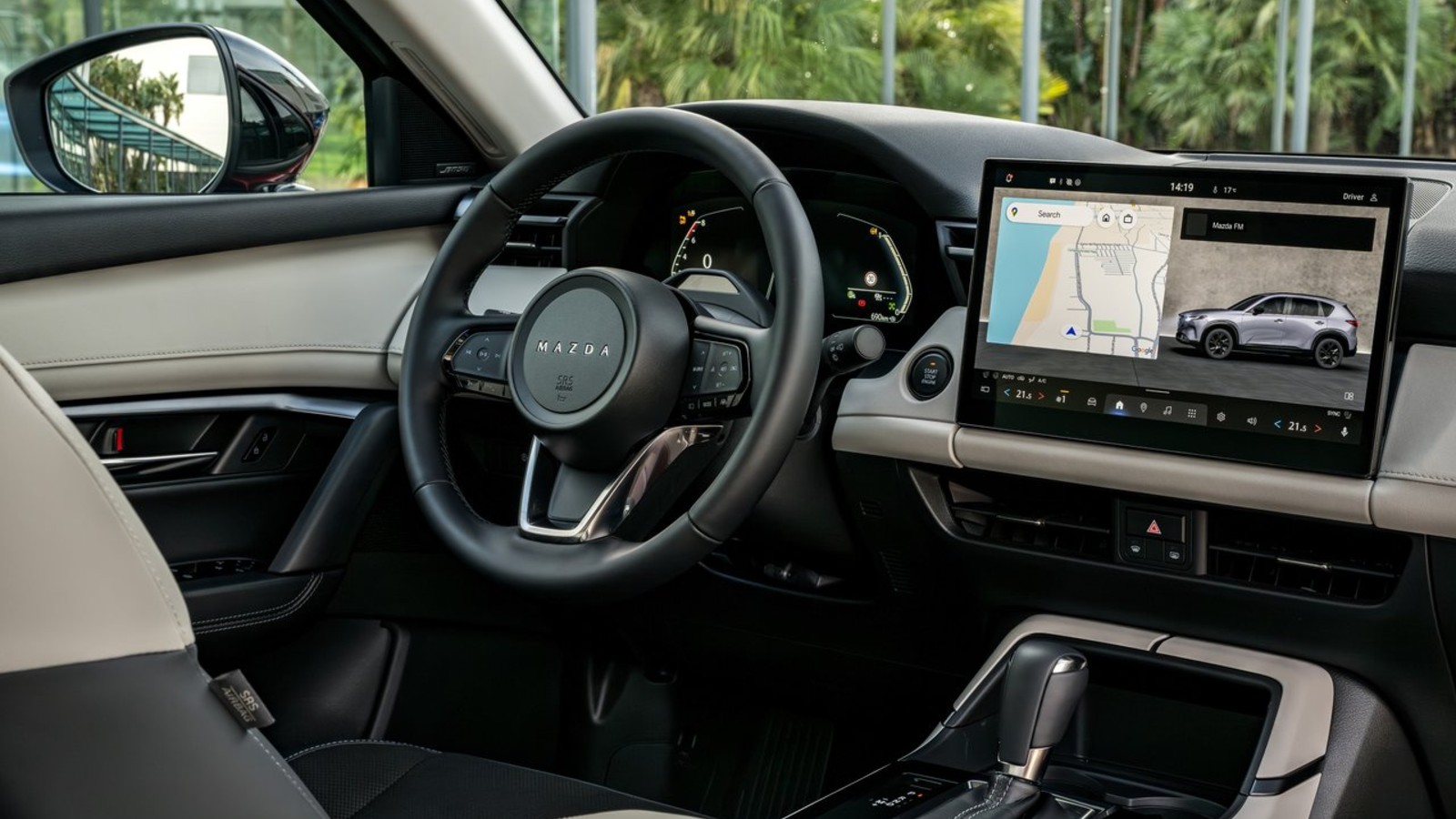 Sin embargo, el foco central de este puesto de conducción se lo lleva el nuevo monitor central que puede tener dos tamaños: 12,9 o 15,6 pulgadas en función del nivel. Una pantalla que es similar a la que ya vimos en el Mazda 6e (prueba) y que destaca no solo por su fluidez sino también porque aglutina todas las funciones del vehículo, incluyendo la climatización.