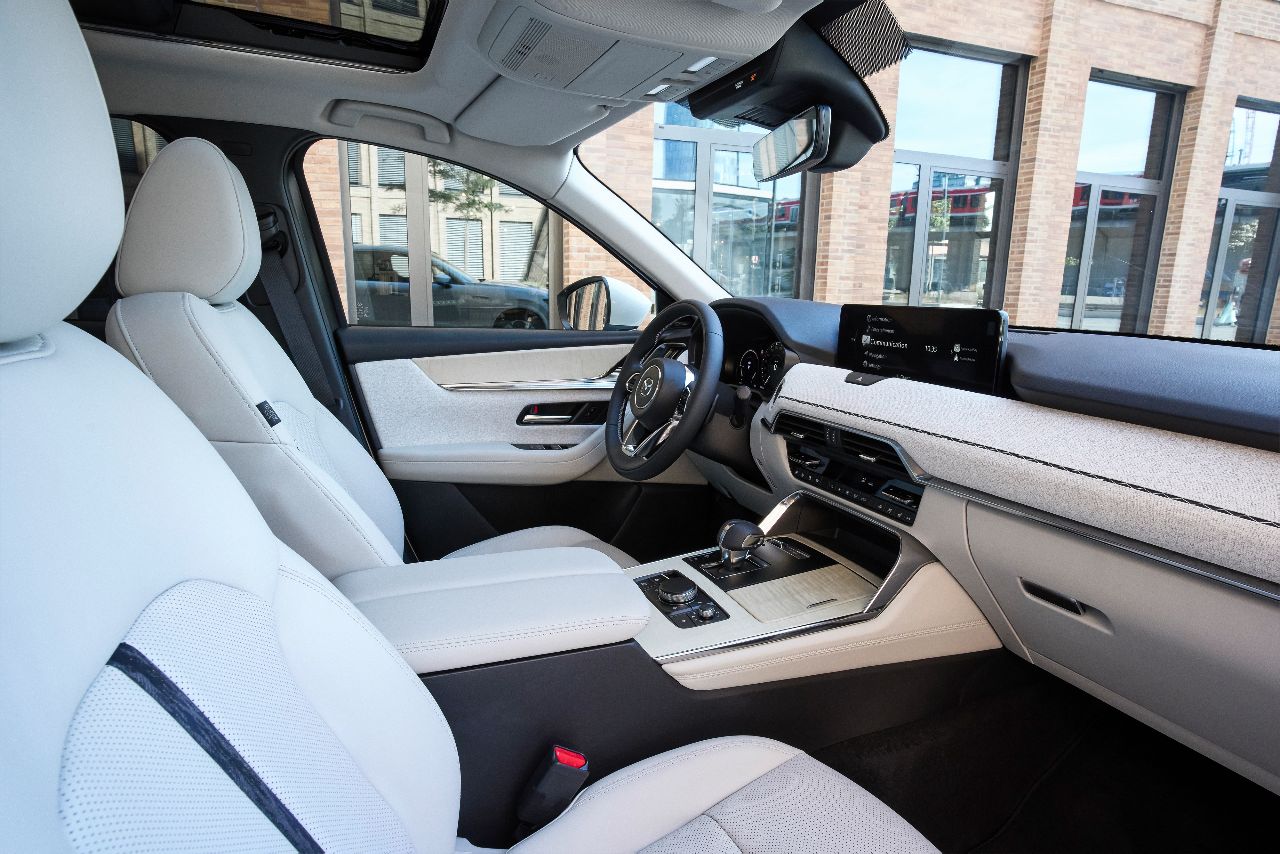 Mazda quiere convertirse en una marca premium y no es nuevo que en el interior veamos mucha calidad, ya lo hemos experimentado en otros modelos de la marca como en el Mazda3. En el interior del Mazda CX-60 se va más allá y se aplican detalles propios de una marca de lujo, como acabados artesanales que realmente sorprenden.